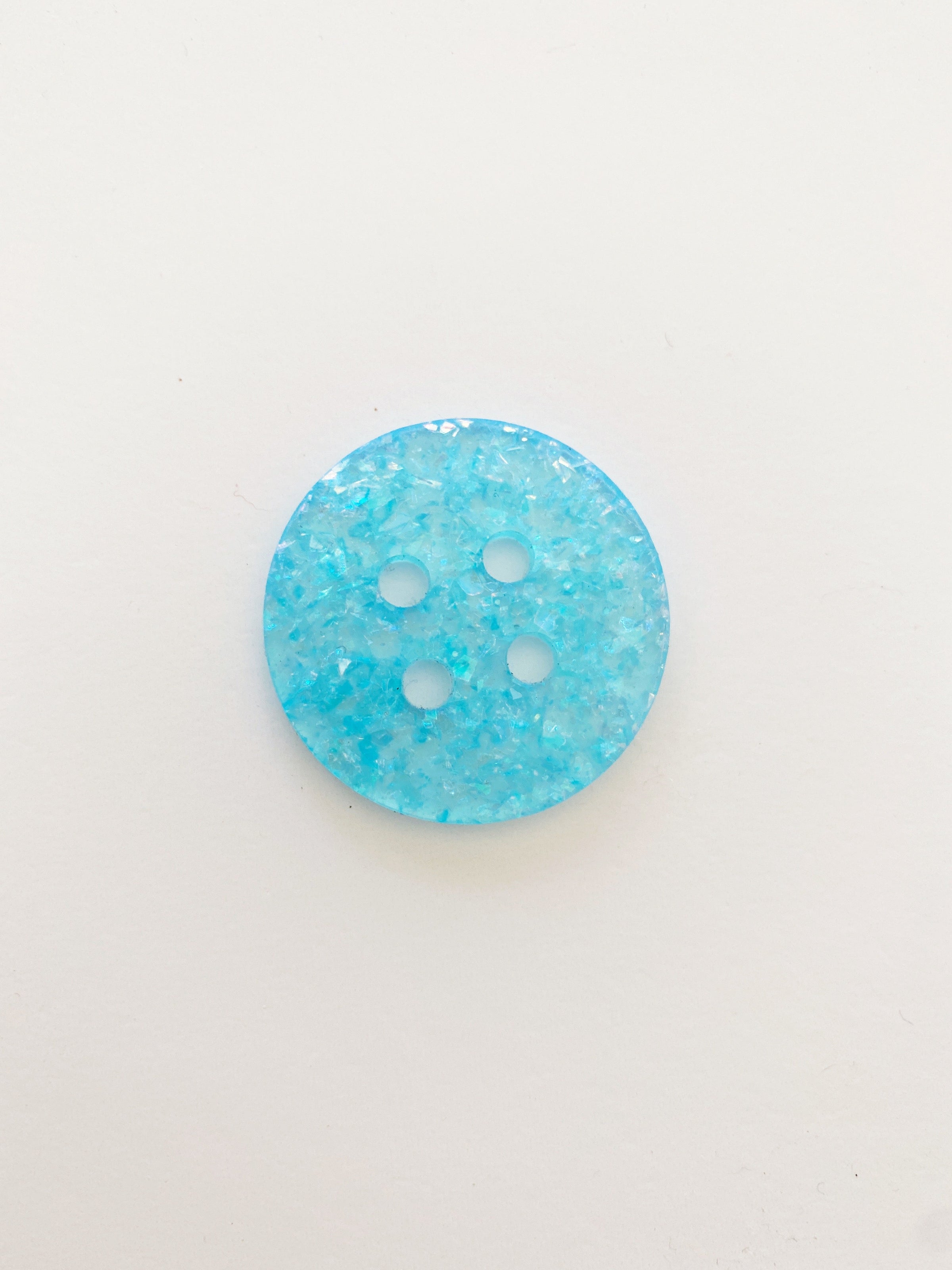 The Iridescent Clear Button is a very stable glitter color, tough to capture on camera. It has a iridescent glitter color inside the clear acyclic.