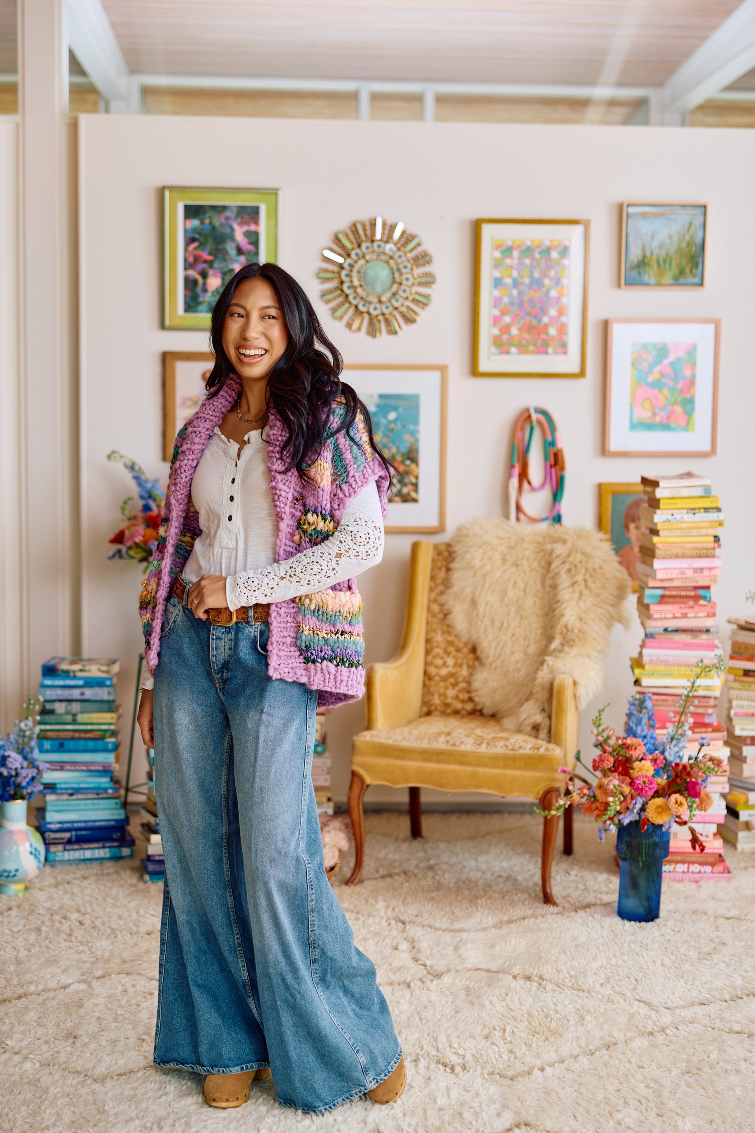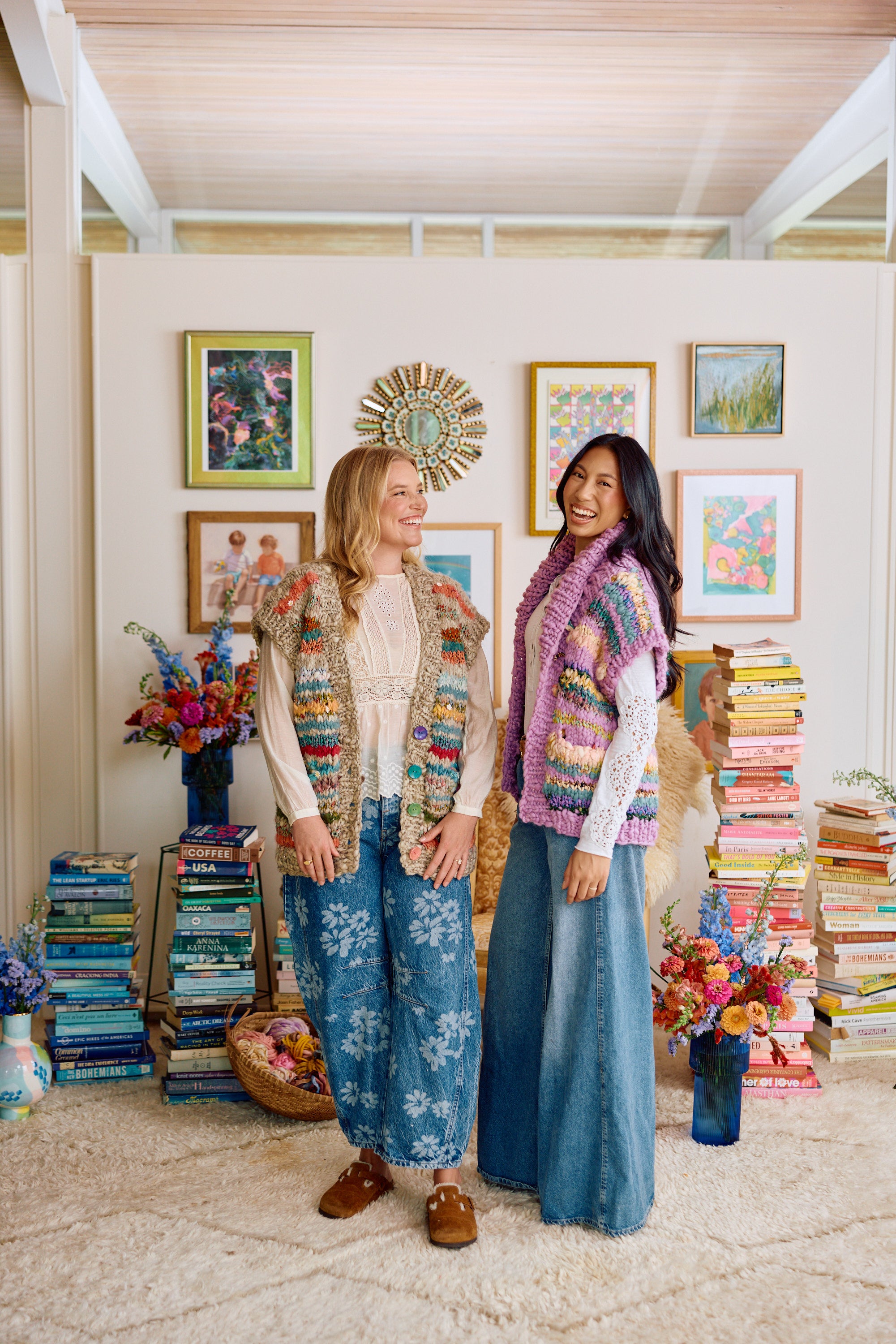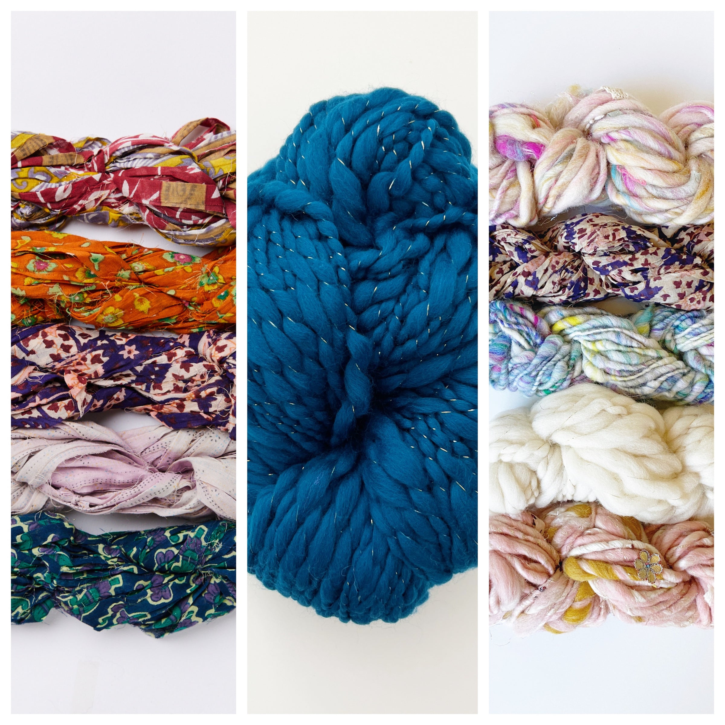 * The yarn needed to complete this project, including 3-4 skeins of Spun Cloud yarn, 1-2 Mini Skein Sampler kits and 1-2 Wildflower Mini kits. (required yarn amount varies upon size you purchase). The Rodeo Vest Yarn kit includes enough yarn for the shawl collar and non-shawl collar options. Please note any modifications to size or length may require additional yarn.