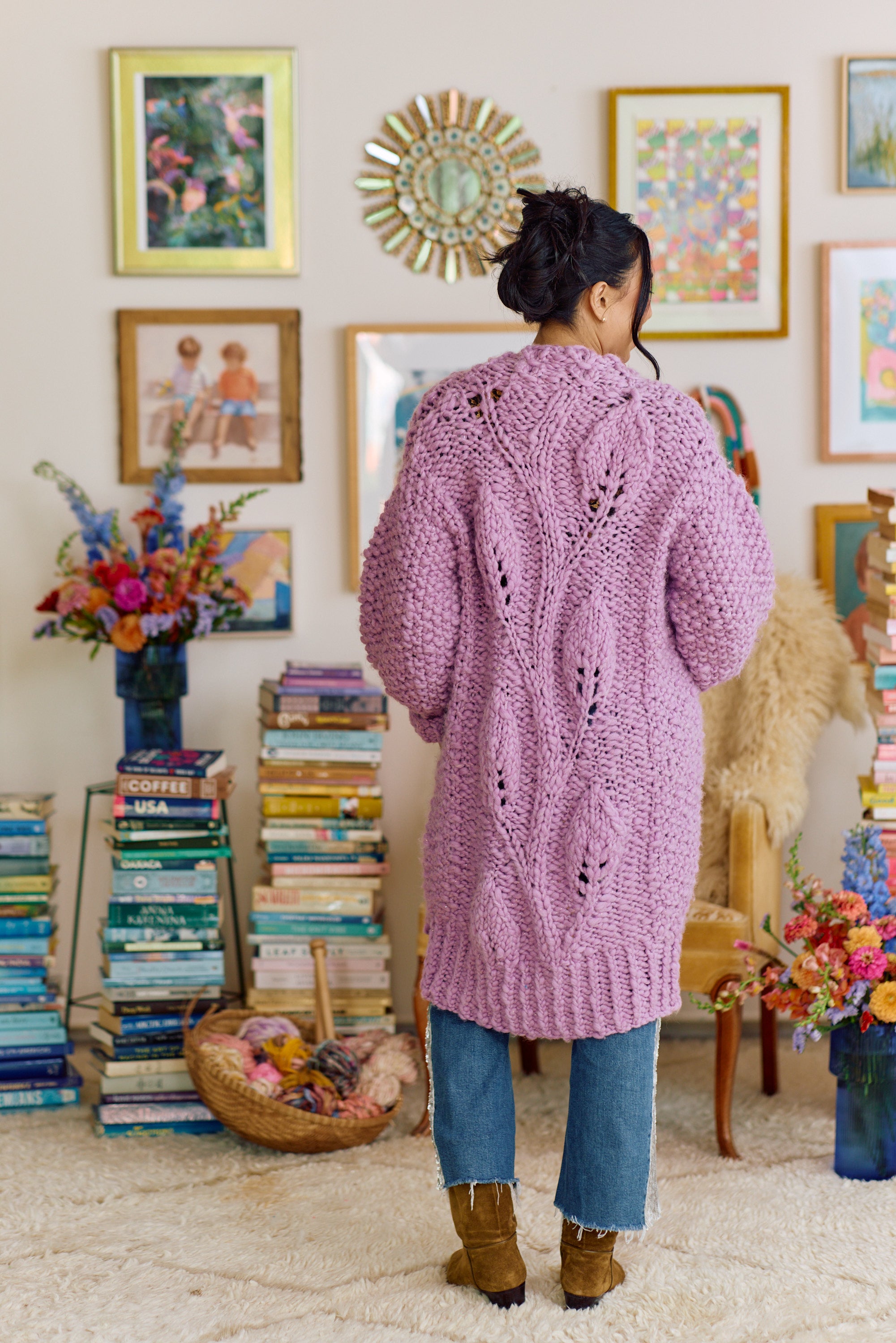 6 (7, 7, 8, 8) [9, 10, 10] skeins for Full Length Option, shown here in Orchid