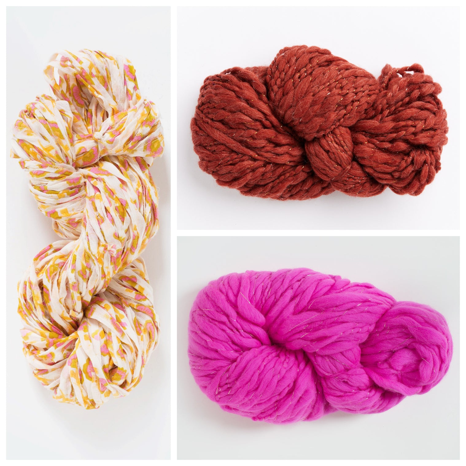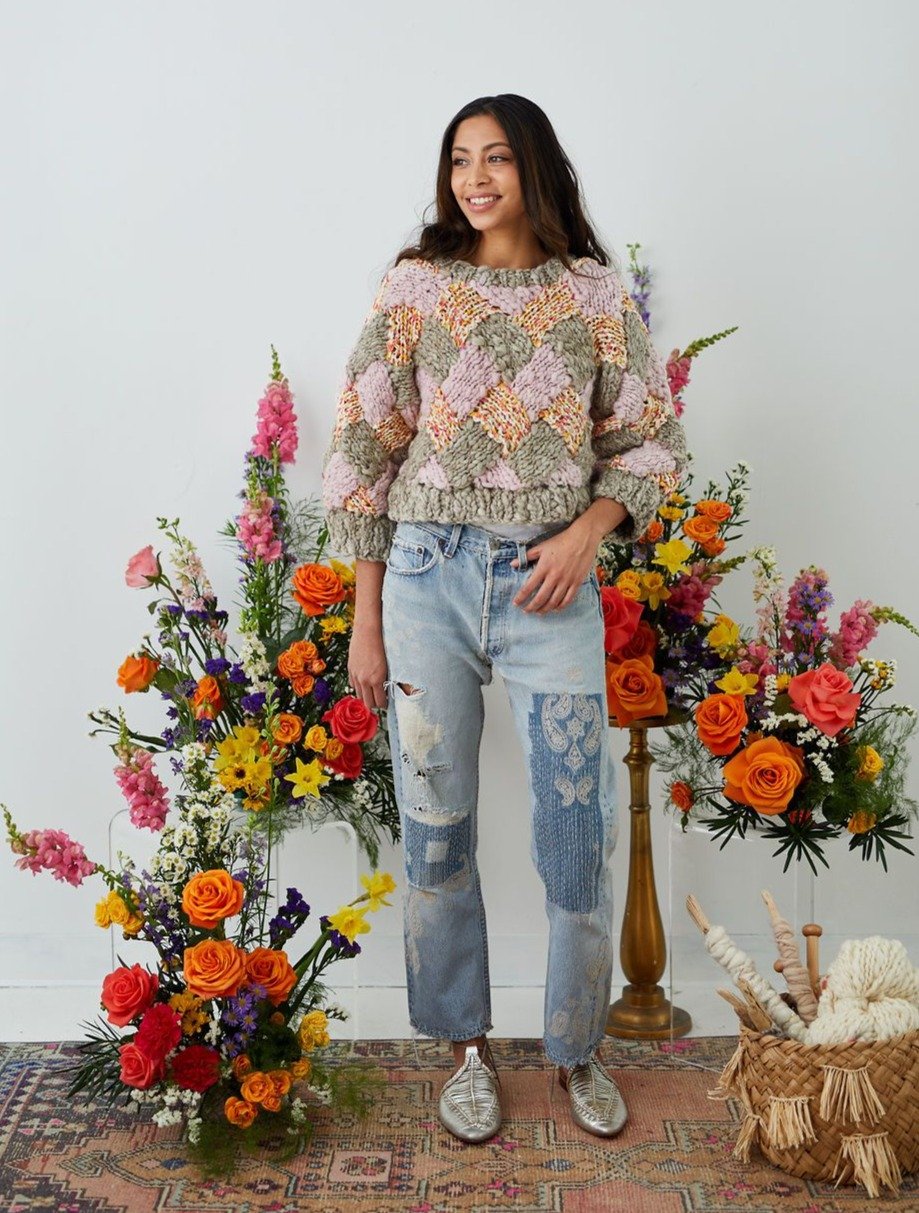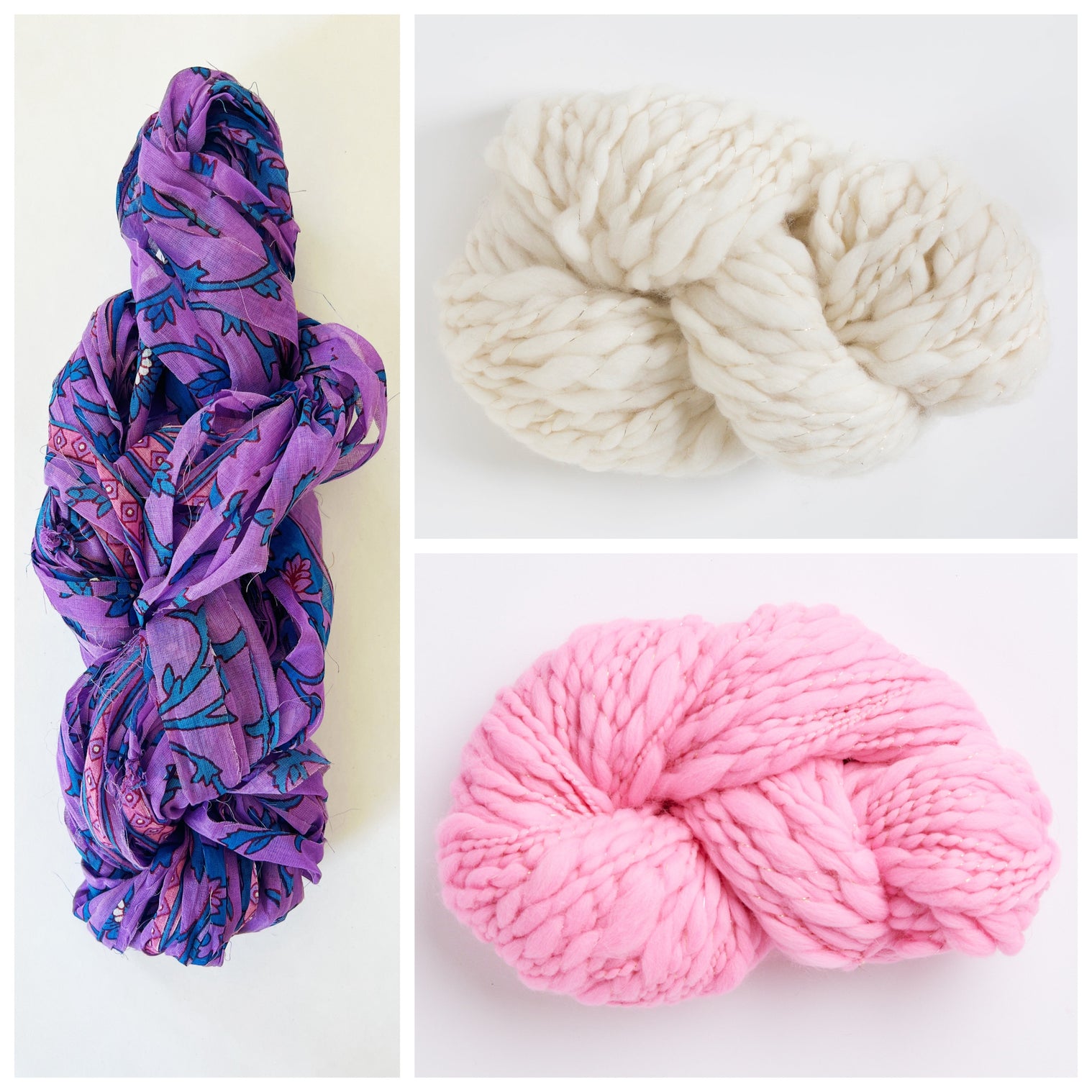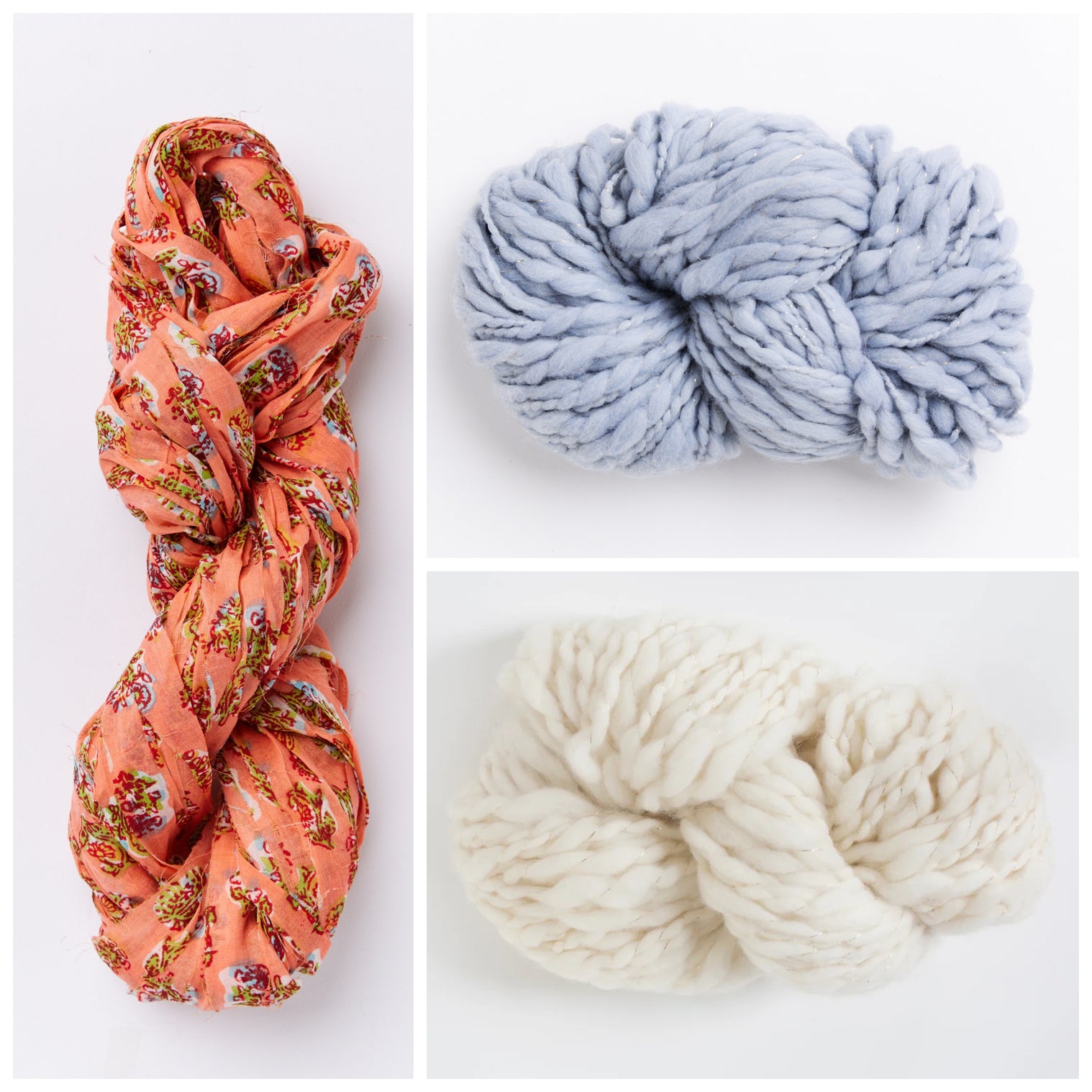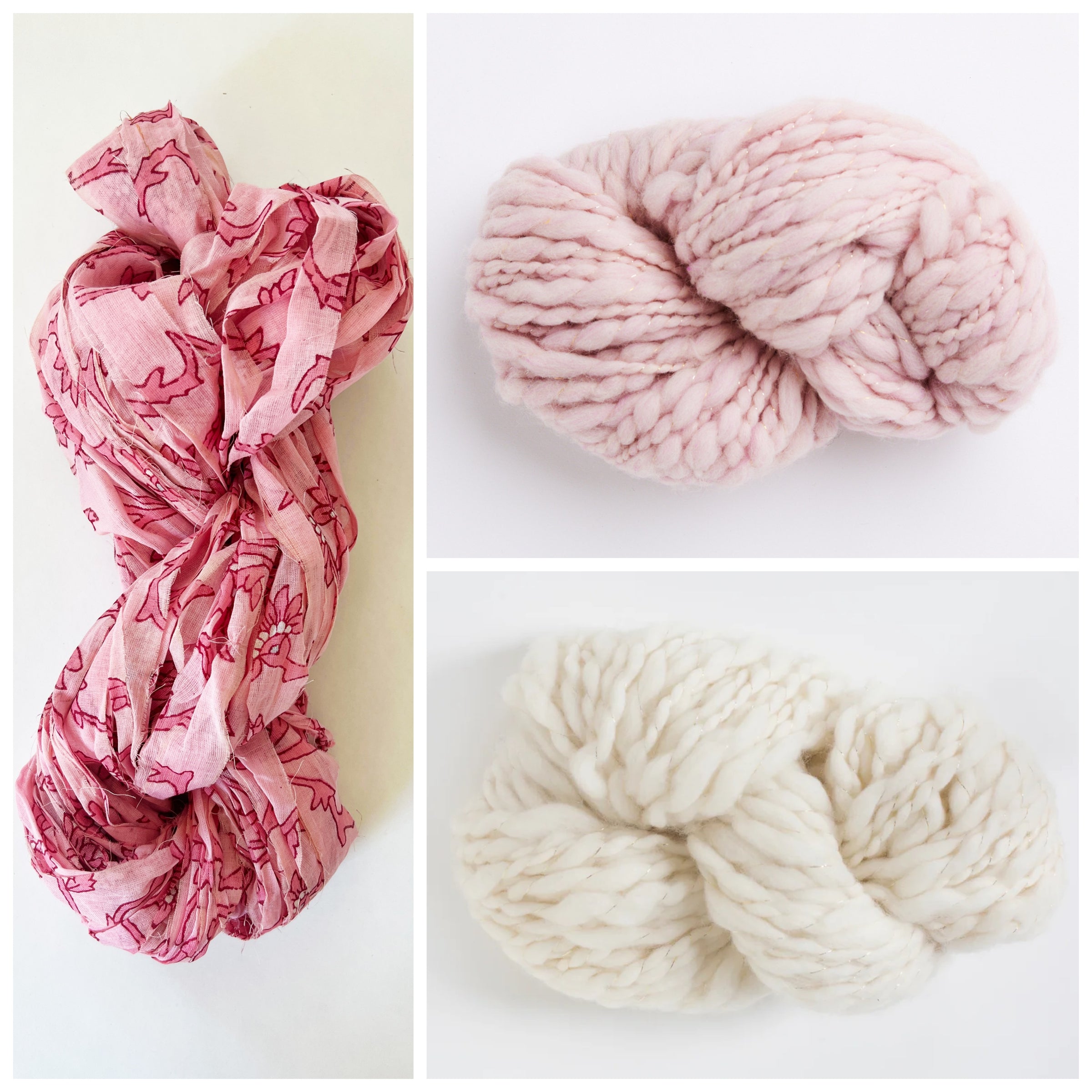 * The yarn needed to complete this project, including 4-7 skeins of 2 different Spun Cloud colors and 3-4 skeins of Wildflower in the same color (required yarn amount varies upon size purchased)