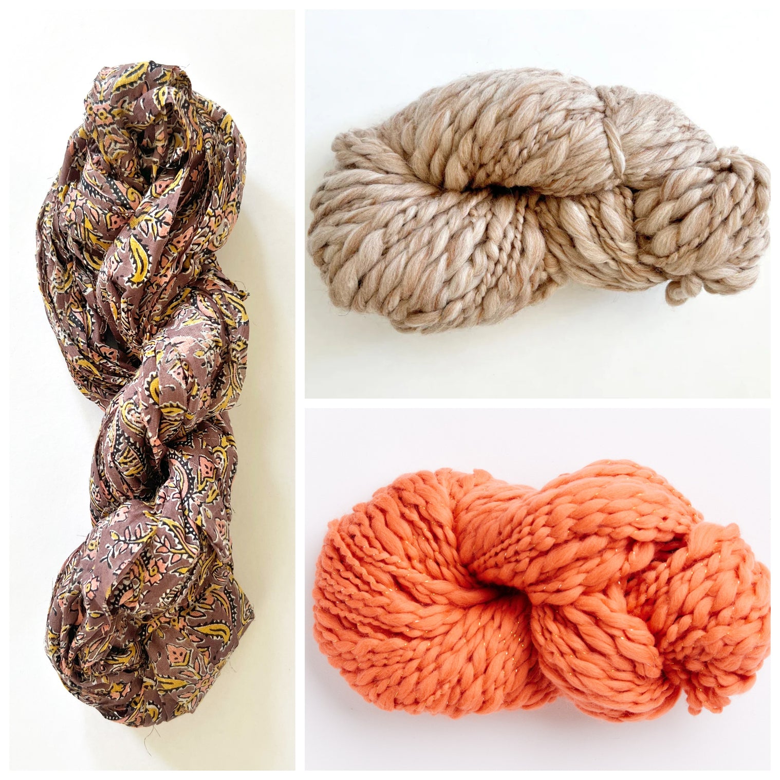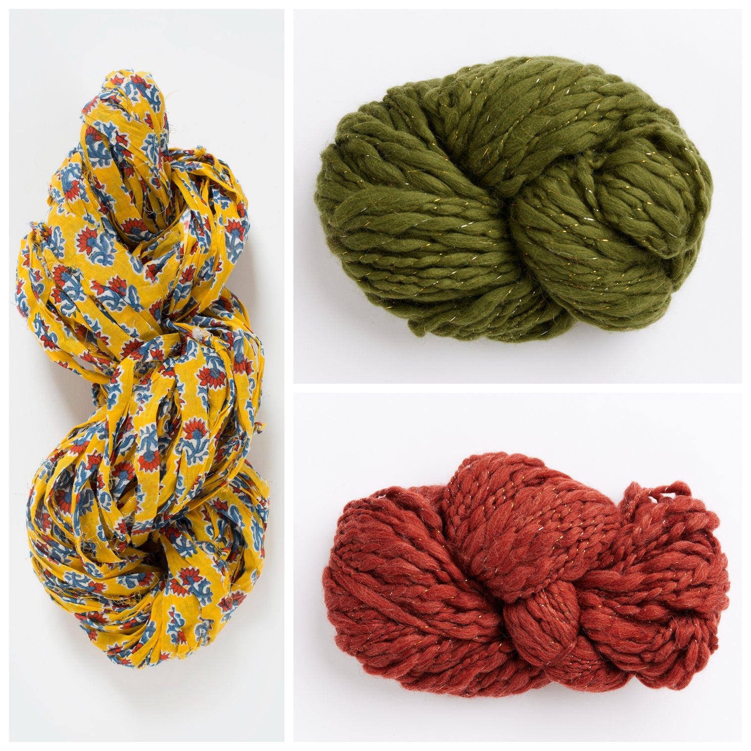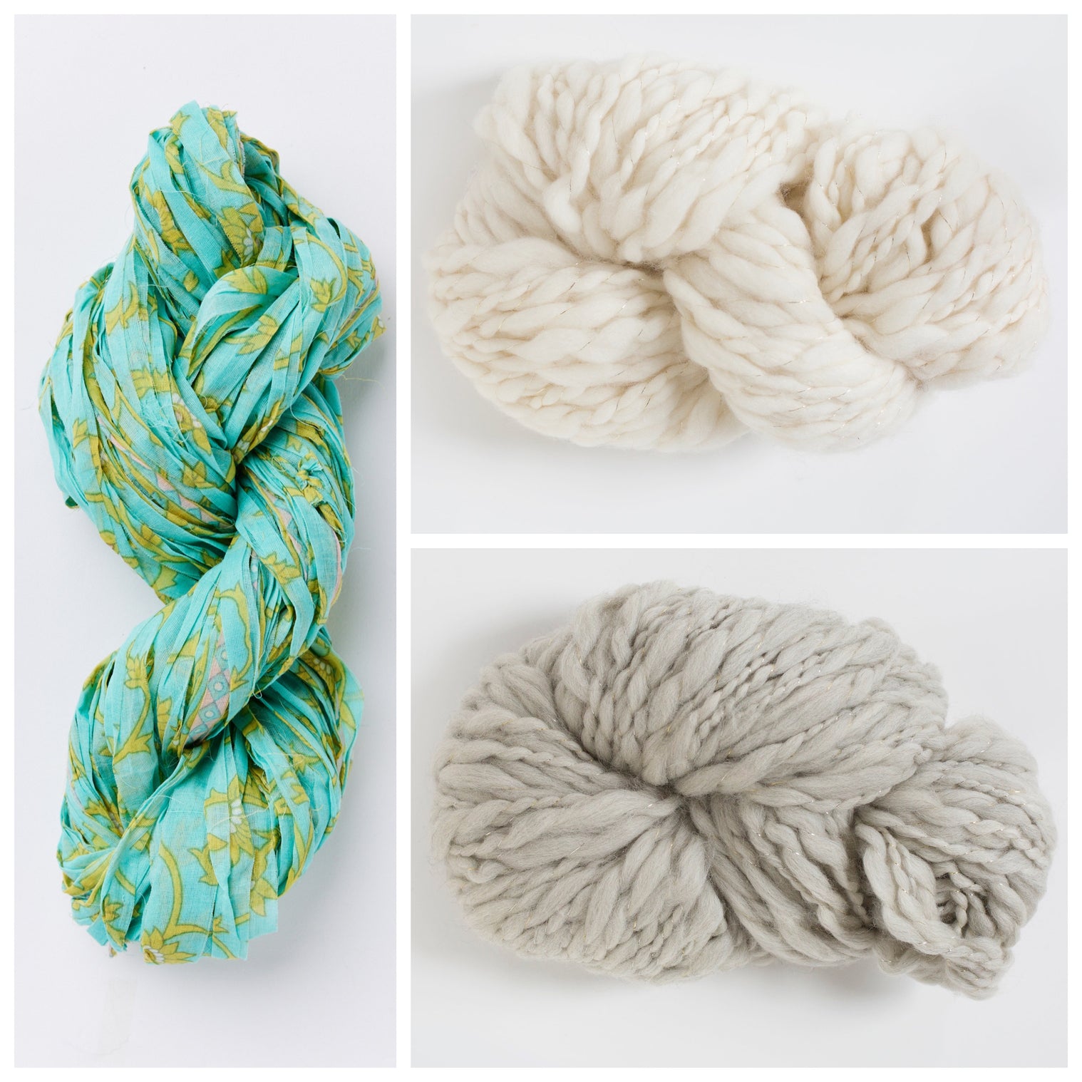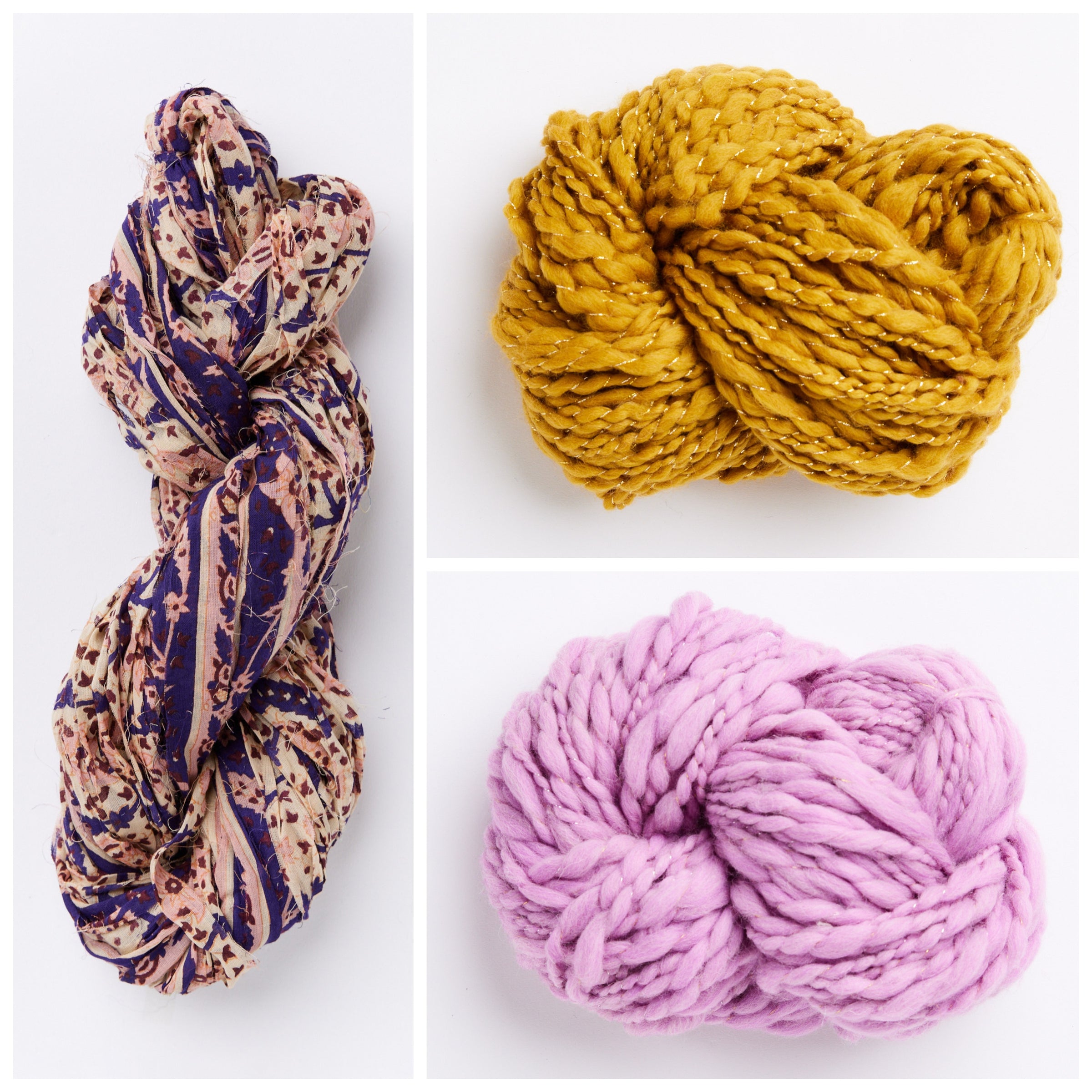 * The yarn needed to complete this project, including 4-7 skeins of 2 different Spun Cloud colors and 3-4 skeins of Wildflower in the same color (required yarn amount varies upon size purchased)