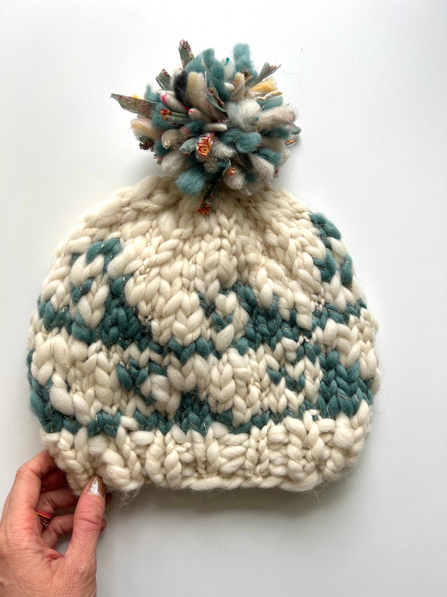 Scrap yarn for securing pom pom (8" / 20 cm)