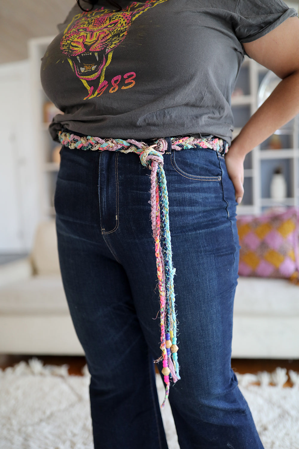 Grab your vintage Levis, your favorite worn in tee and your crochet hook because this braided belt is the perfect piece to channel your inner Penny Lane. The Stillwater Braided Belt is made by crocheting long chains of our Wildflower yarn, braiding them together and then finishing it off with wood and pony beads for a little extra playful embellishment. There are options for 2 different belt widths (Narrow or Wide).
