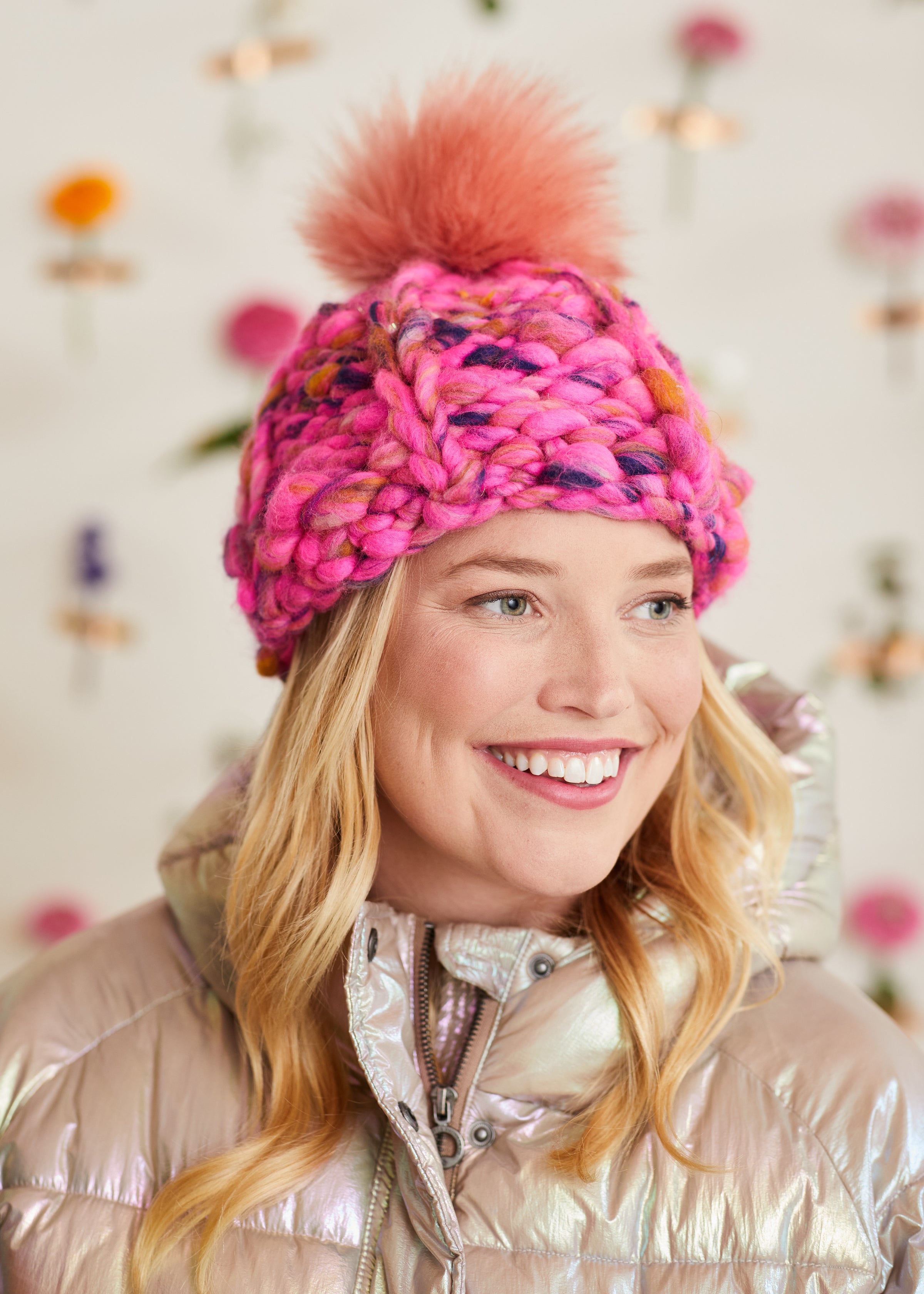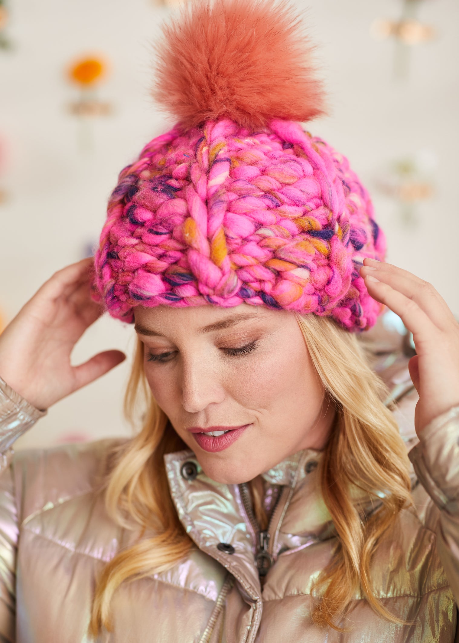 Take a chance and say yes to a new winter adventure in this chunky knit hat! One thing is for sure, you won't have to worry about the cold because this hat will keep your ears so toasty and warm.