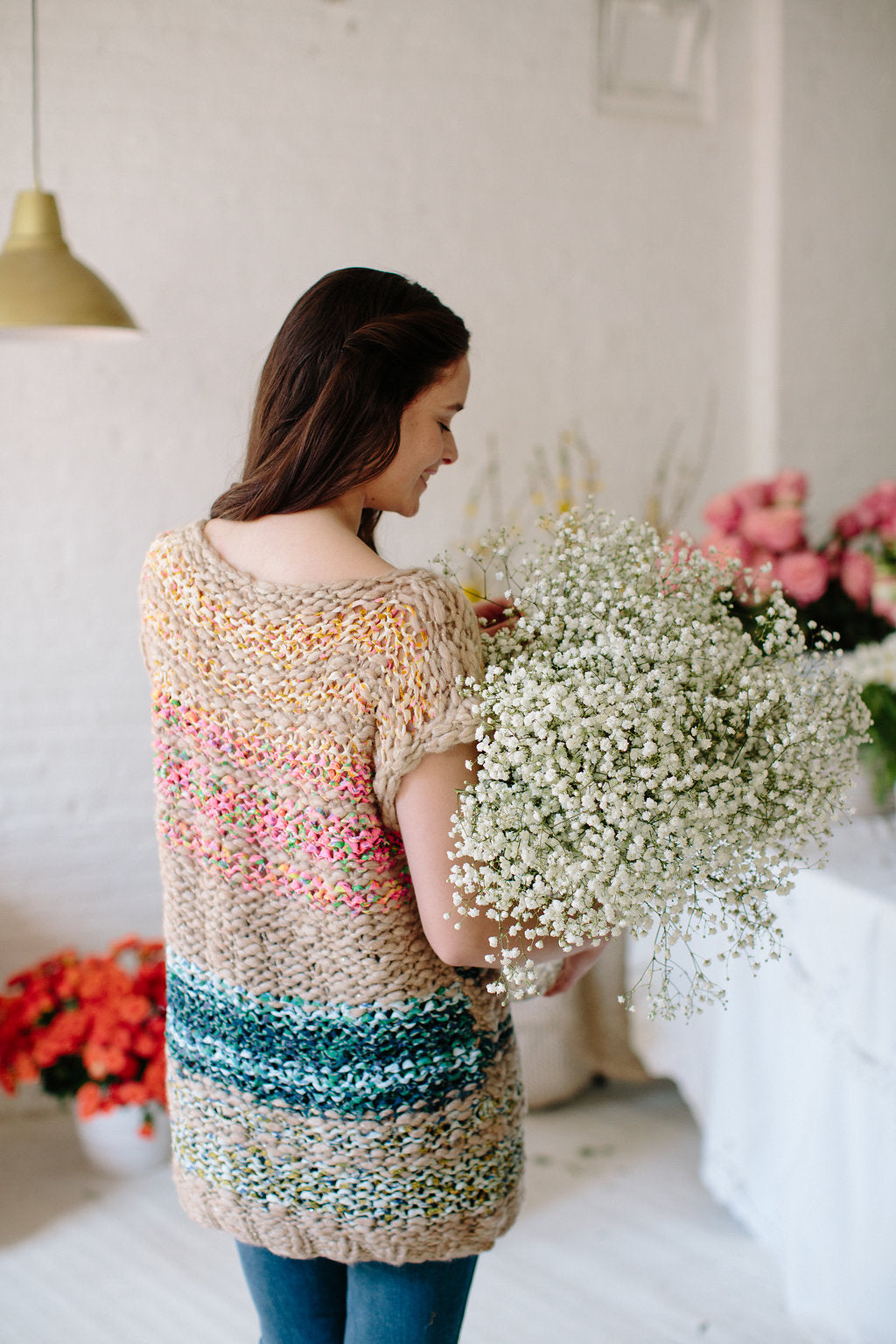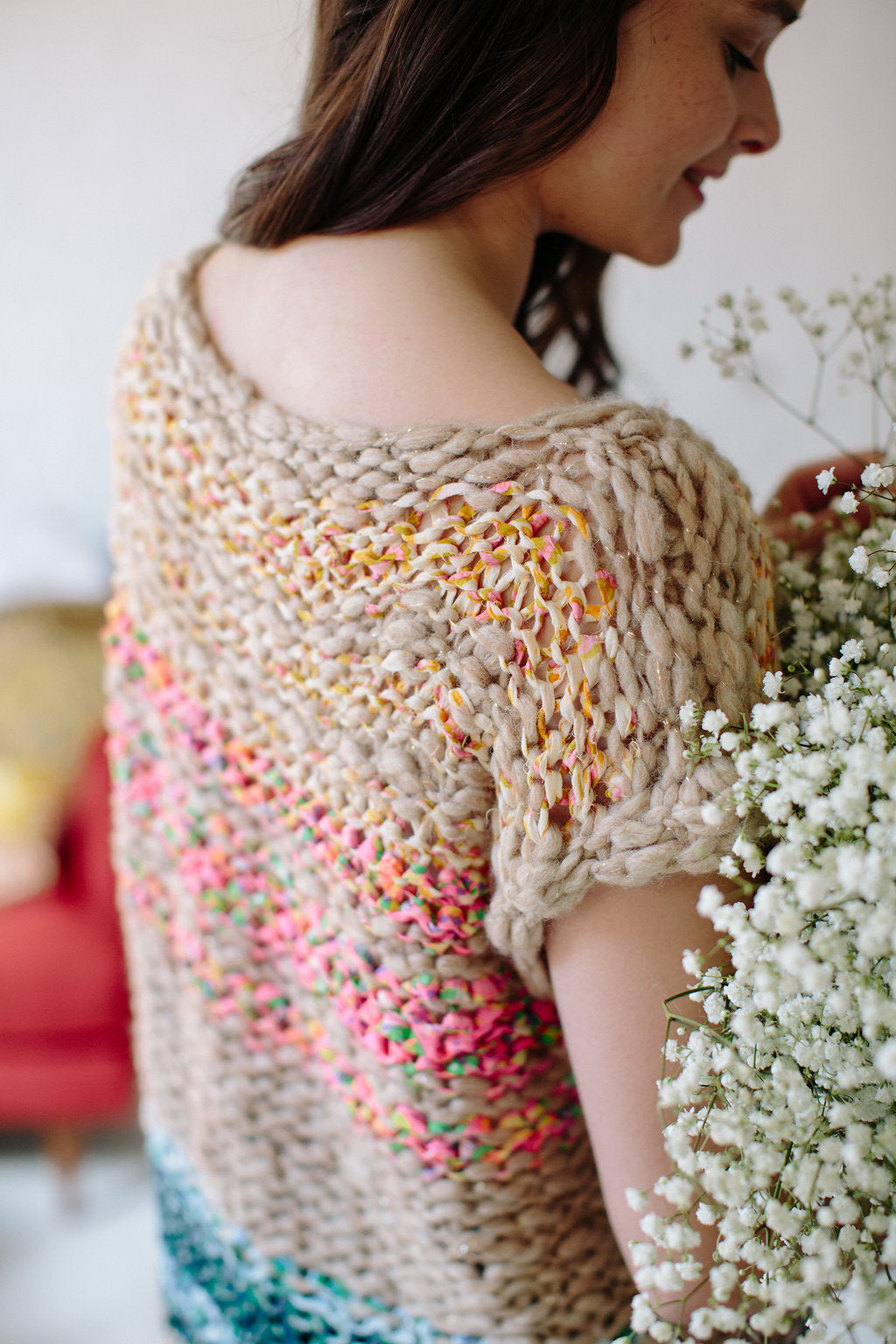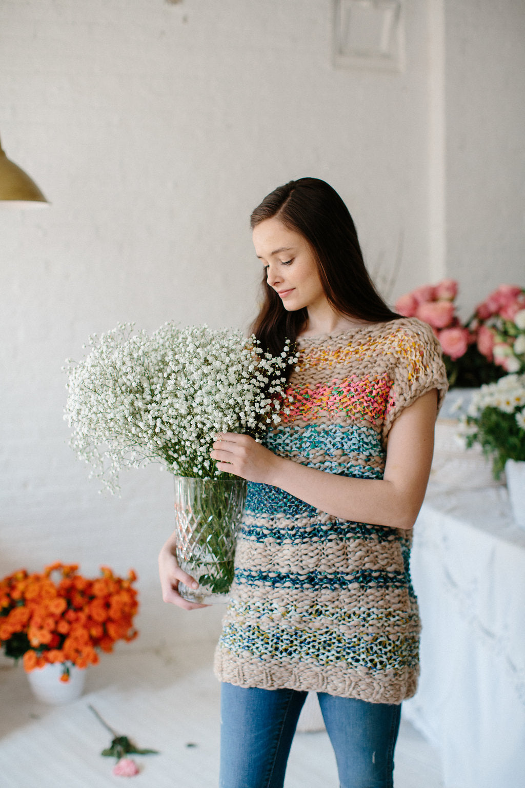 The Summer Sweetness Tunic is light and airy to wear, making it ideal for warmer weather months. This is a great design to pick if you want to explore knitting with many colorful yarns together. The pattern calls for 2 skeins of our Spun Cloud yarn and 5 skeins of our Wildflower yarn.