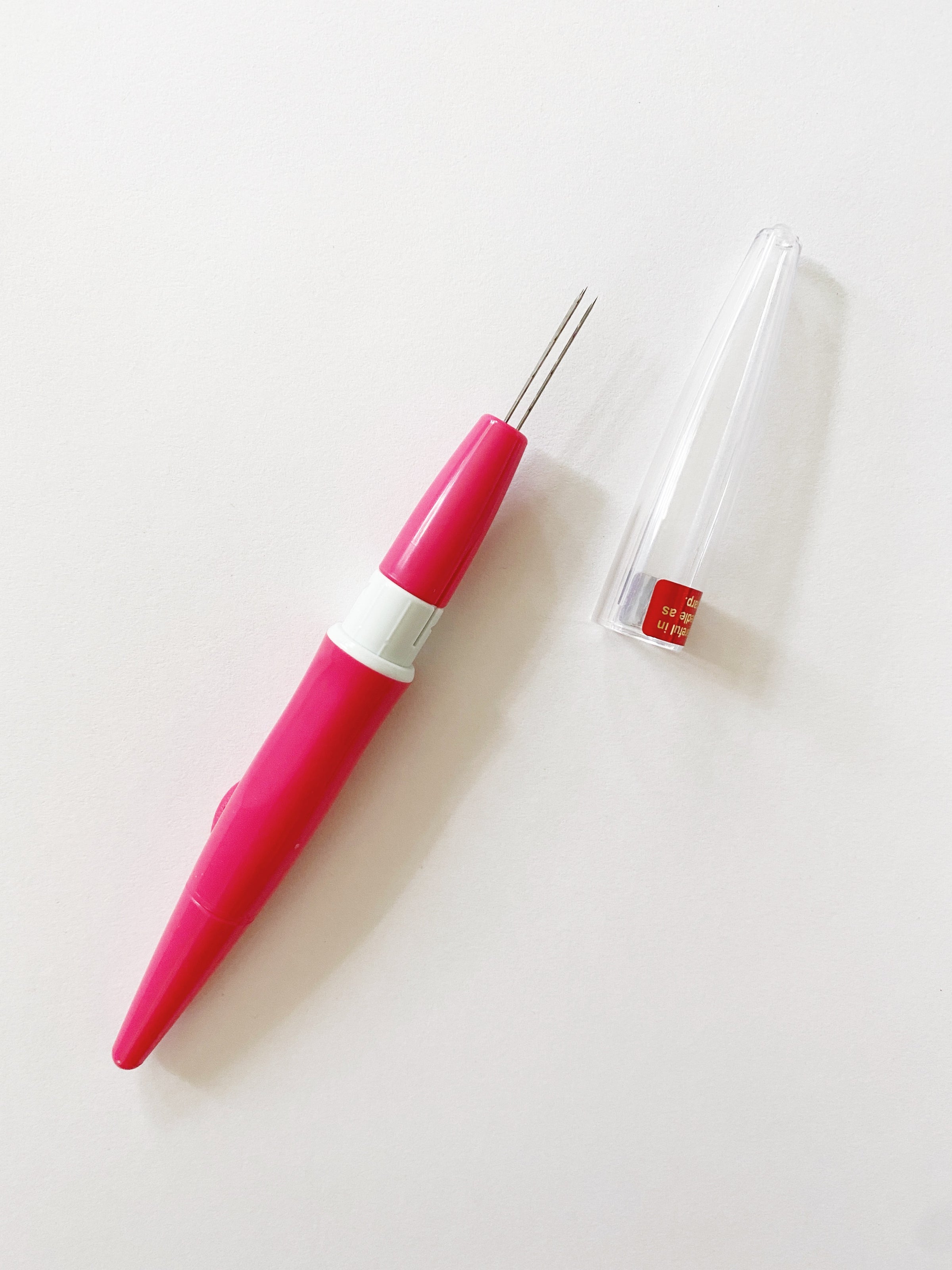 - Needle Felting Tool - THE go to tool for dealing with pesky ends. This needle felting tool locks ends into place on the wrong side (or inside) of your project. This tool also comes in hand when you want to join two yarns together.
