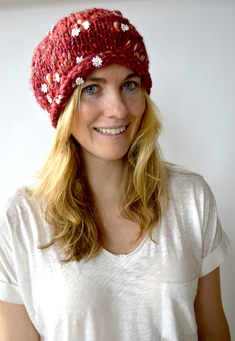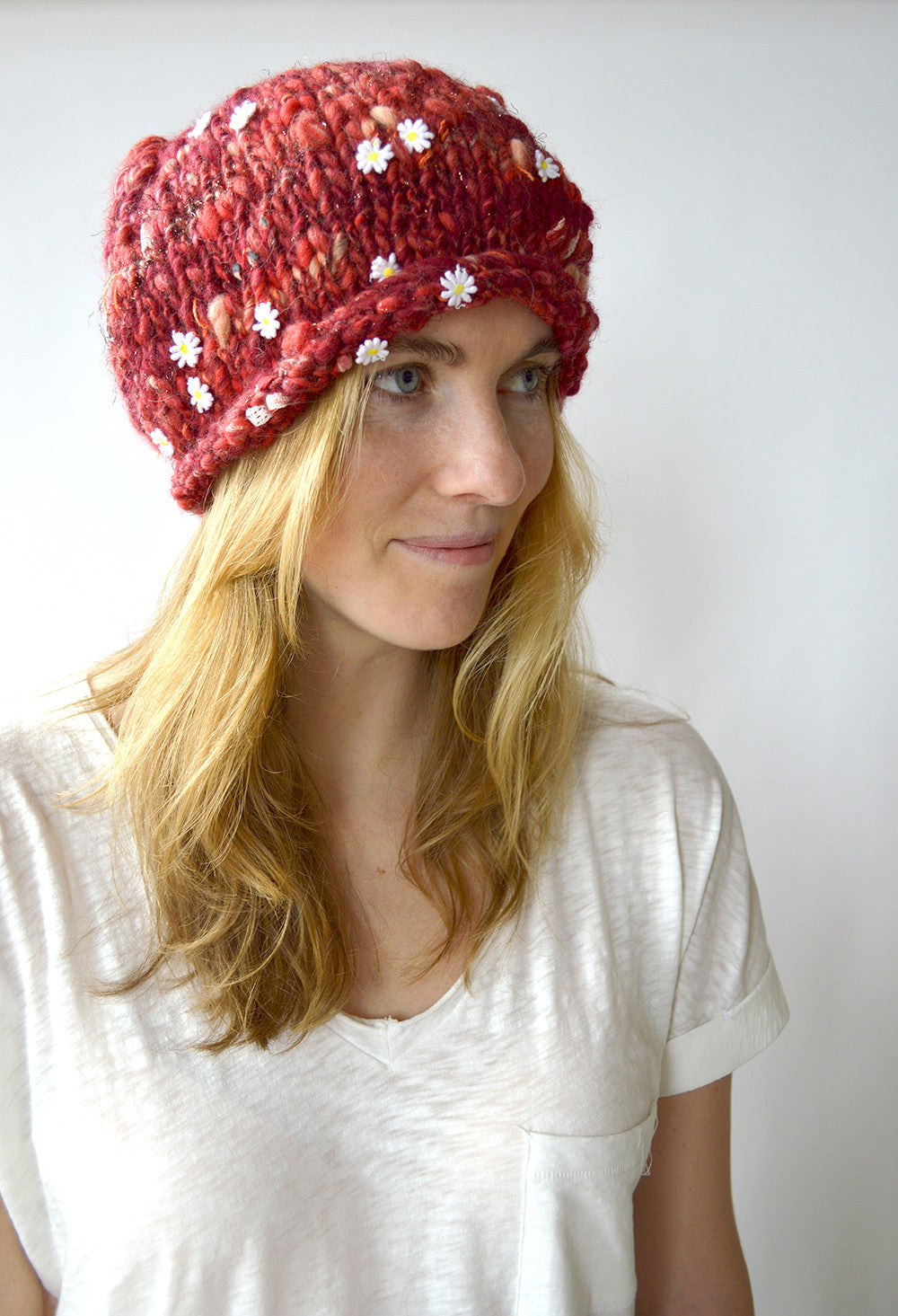 This hat features a rolled edge brim and relaxed slouch fit. It's the perfect pattern to show off our Daisy Chain yarns!