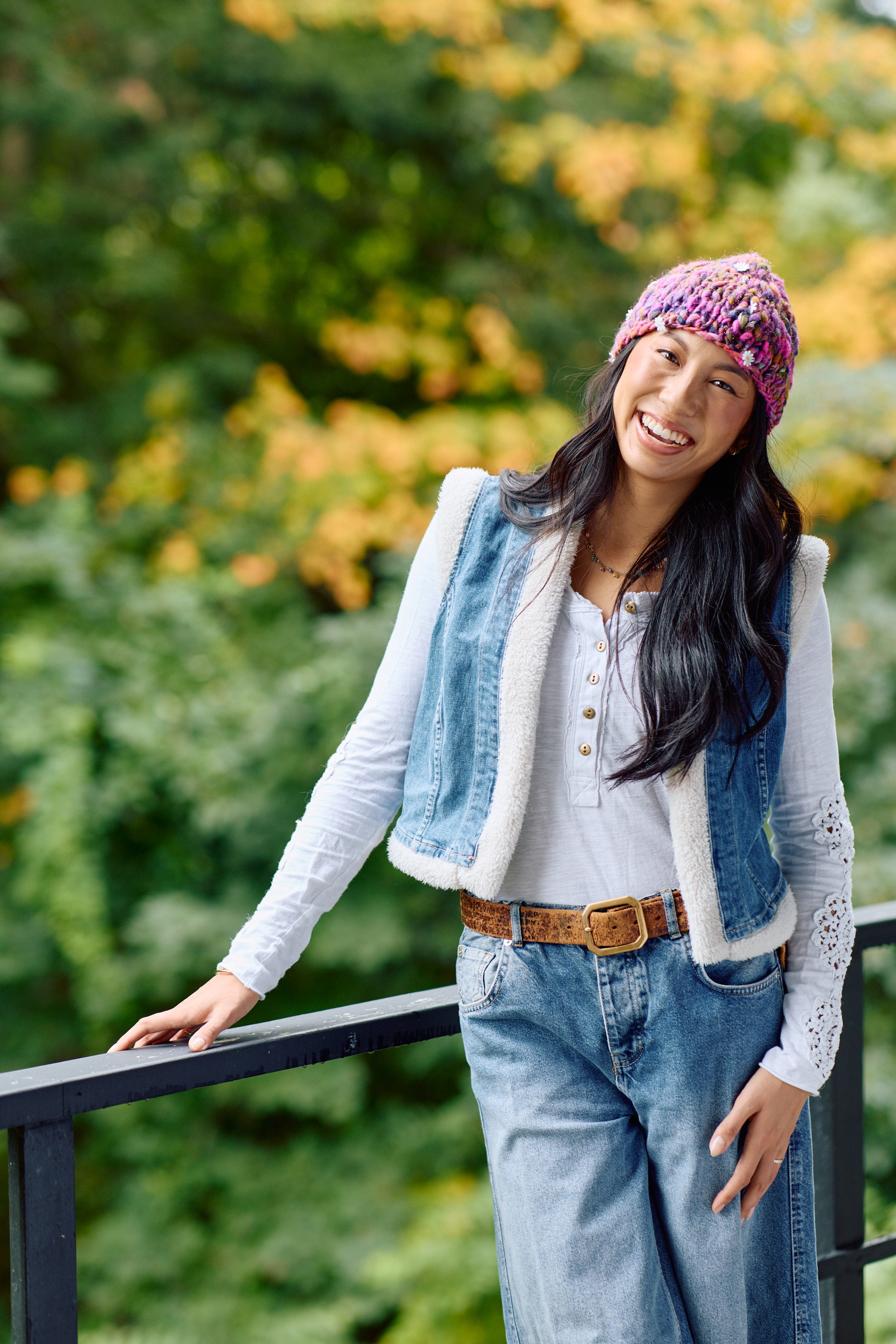 Crown yourself in flowers with the First Bloom Beanie! Knit stitches spiral in the round and are brought together with decreases to shape the crown. Designed to be a first hat for beginning knitters, it’s fast and fun for more practiced hands as well.