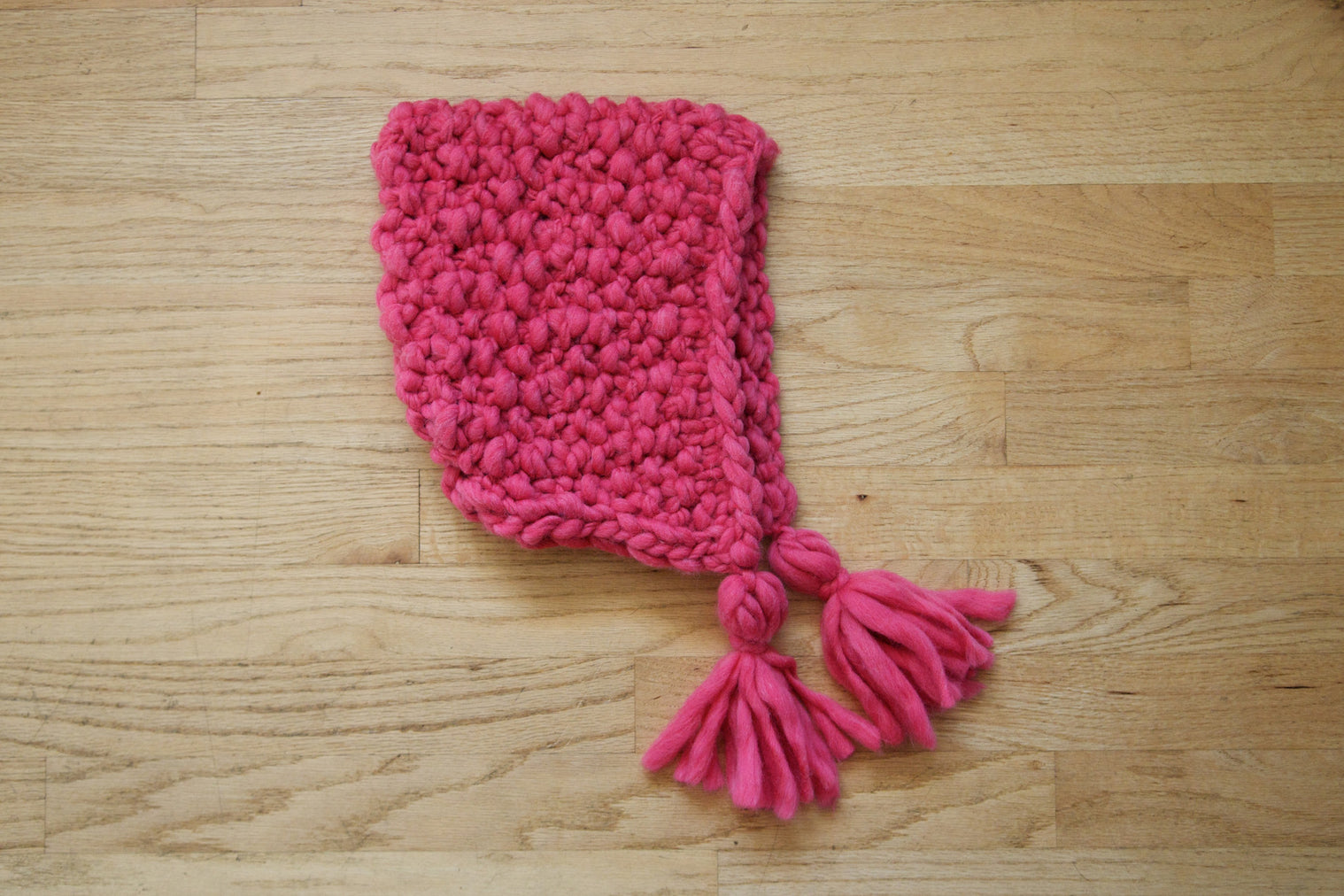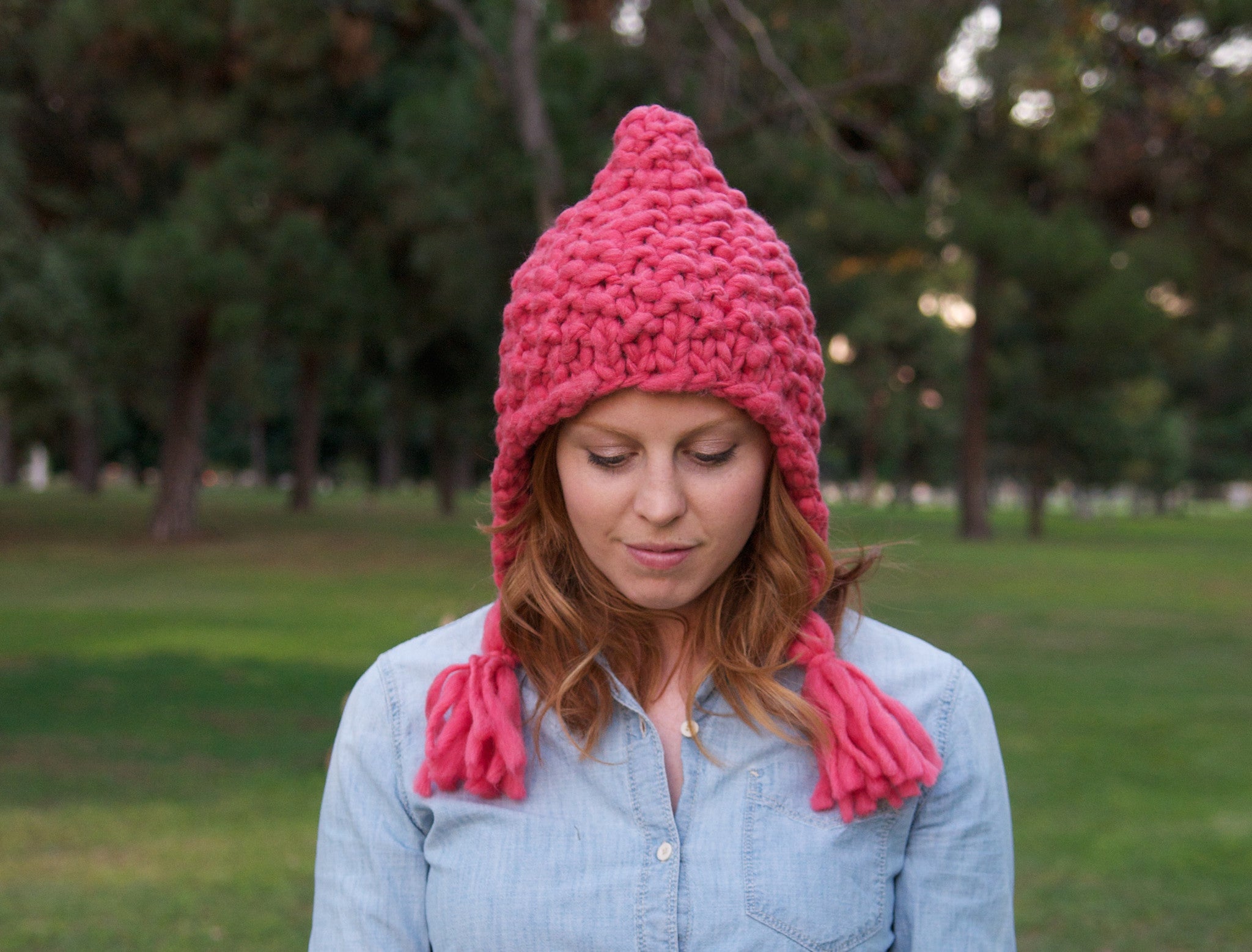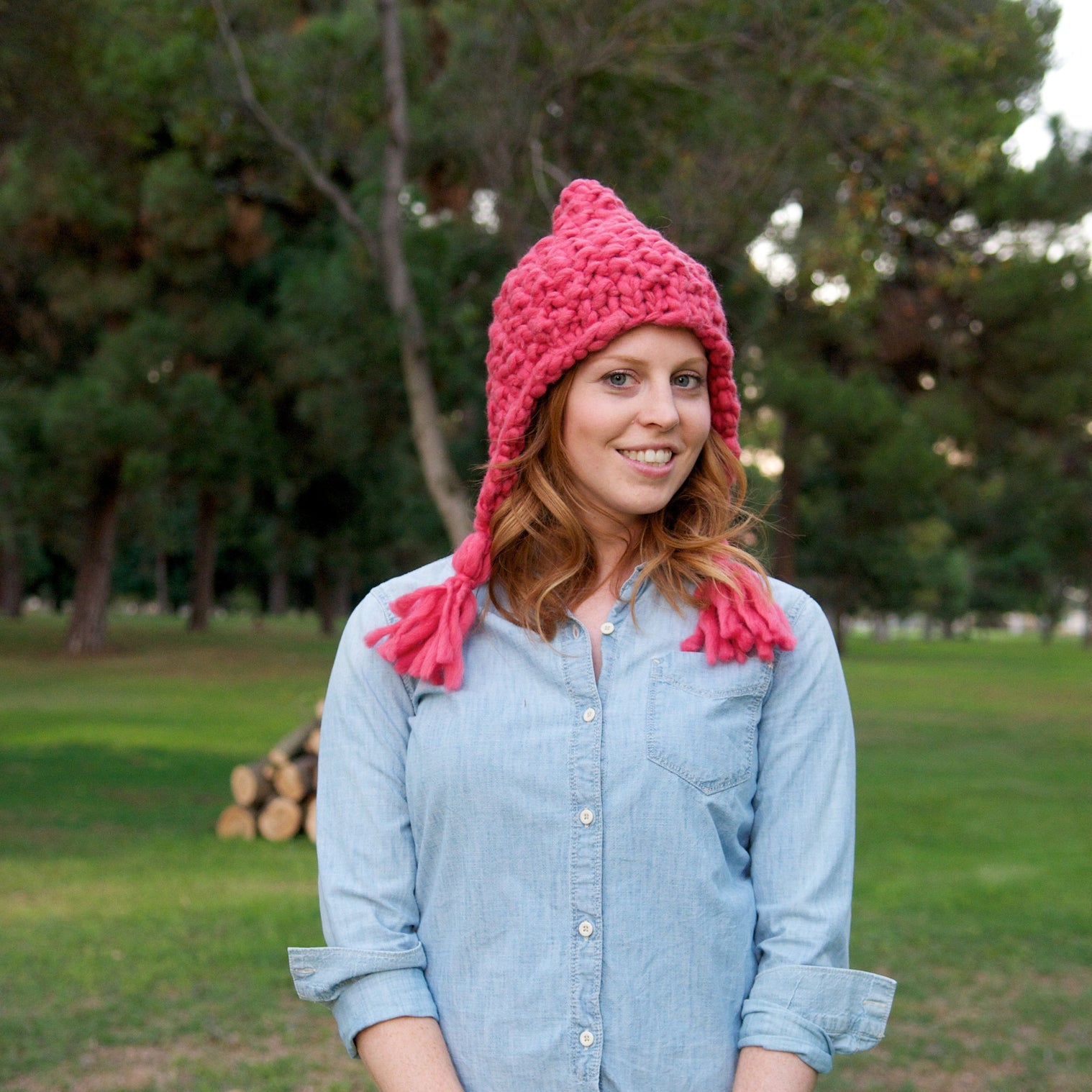 The Free Bird Hoodie Hat is one seriously cozy and charming hat. The mix of chunky knit seed stitch and tassels combine to make this piece a cold weather essential. The hoodie shape perfectly covers your ears to keep you warm all winter long. Best part- you'll just need one skein of our bulky Sister yarn to complete it. Color Jaipur Rose shown here.