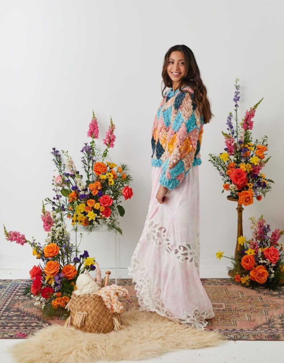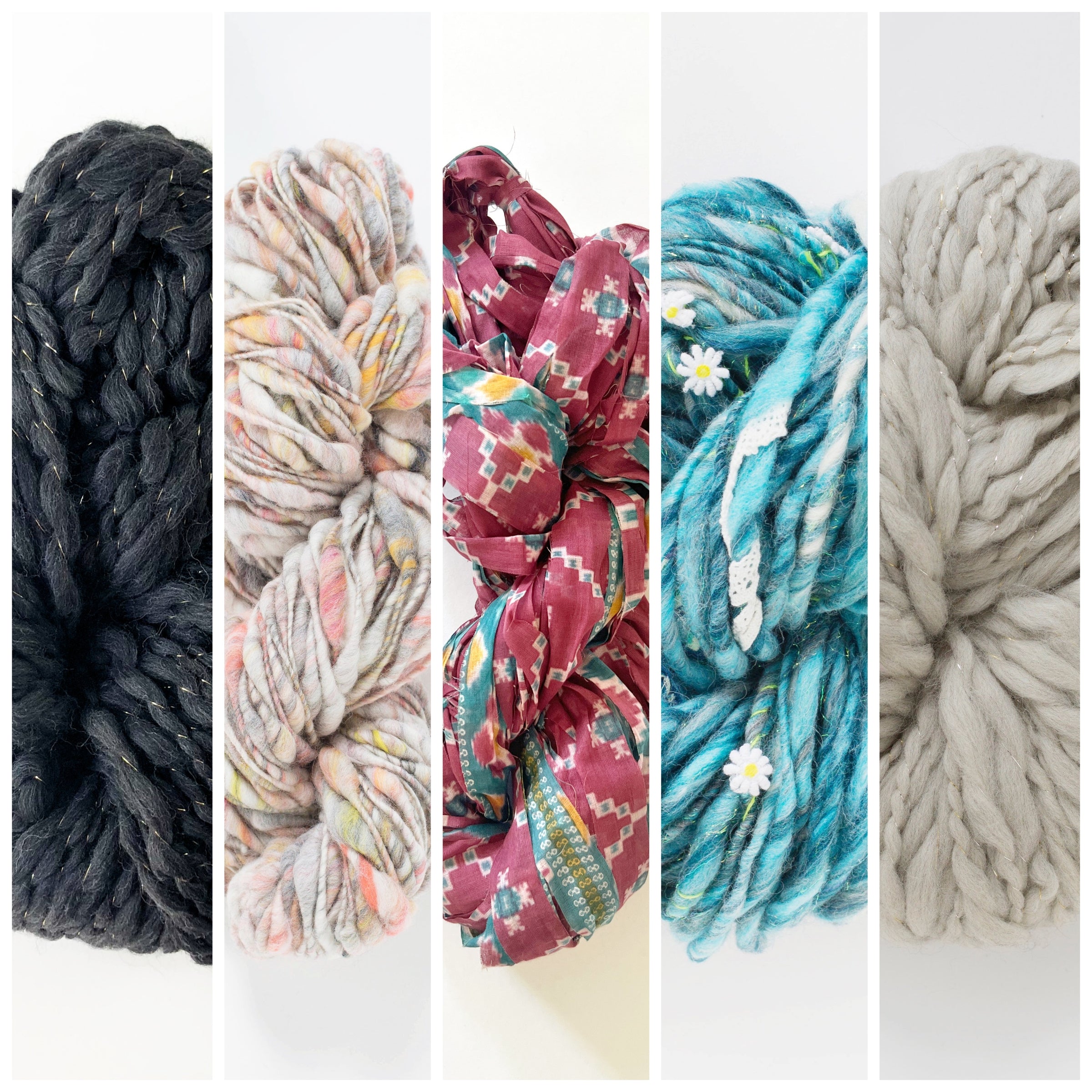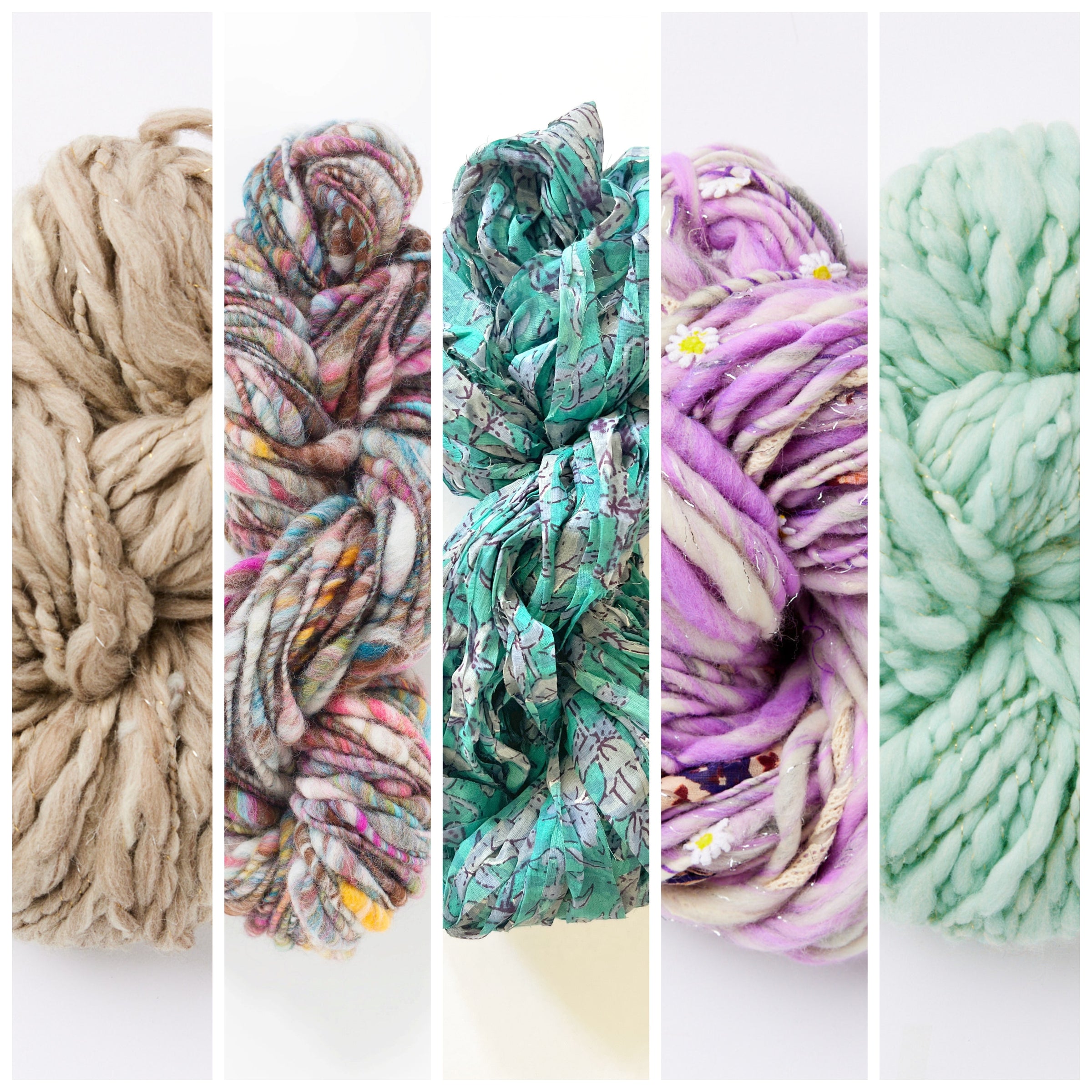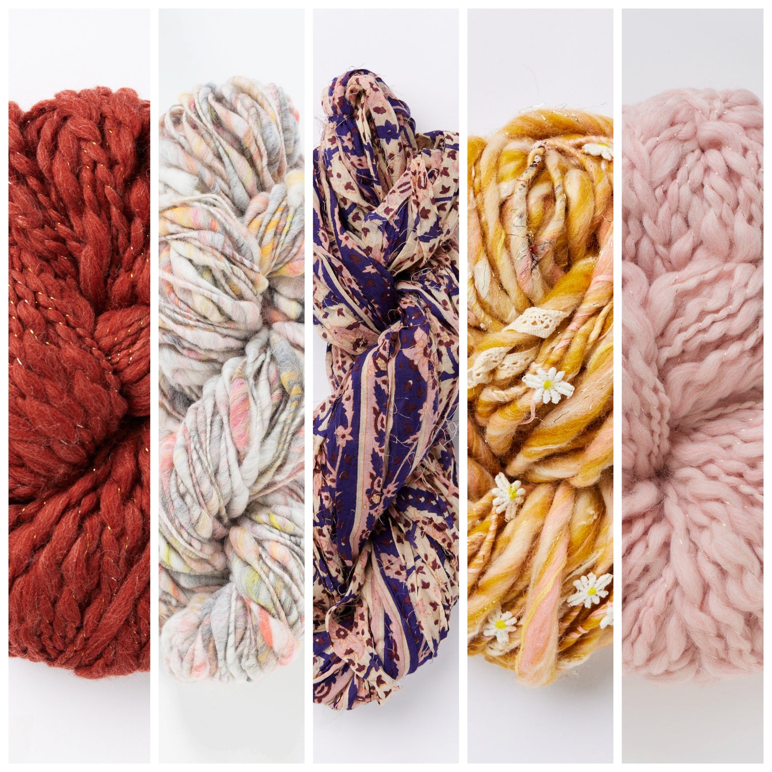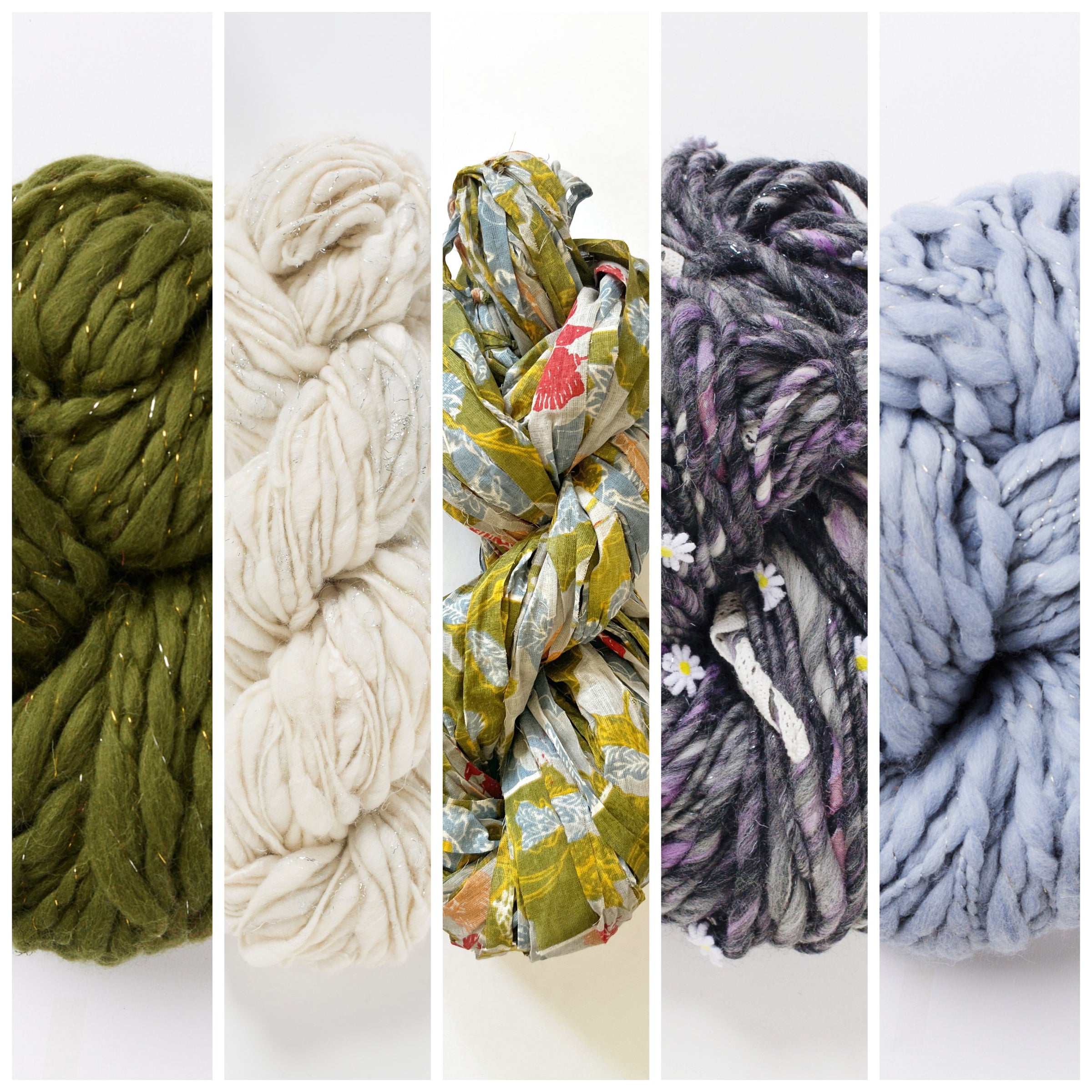 * The yarn needed to complete this project, including 4-7 skeins of 2 different Spun Cloud colors, 2- 3 skeins of Cast Away, 2-3 skeins of Wildflower and 2-3 skeins of Daisy Chain in the same color (required yarn amount varies upon size purchased).