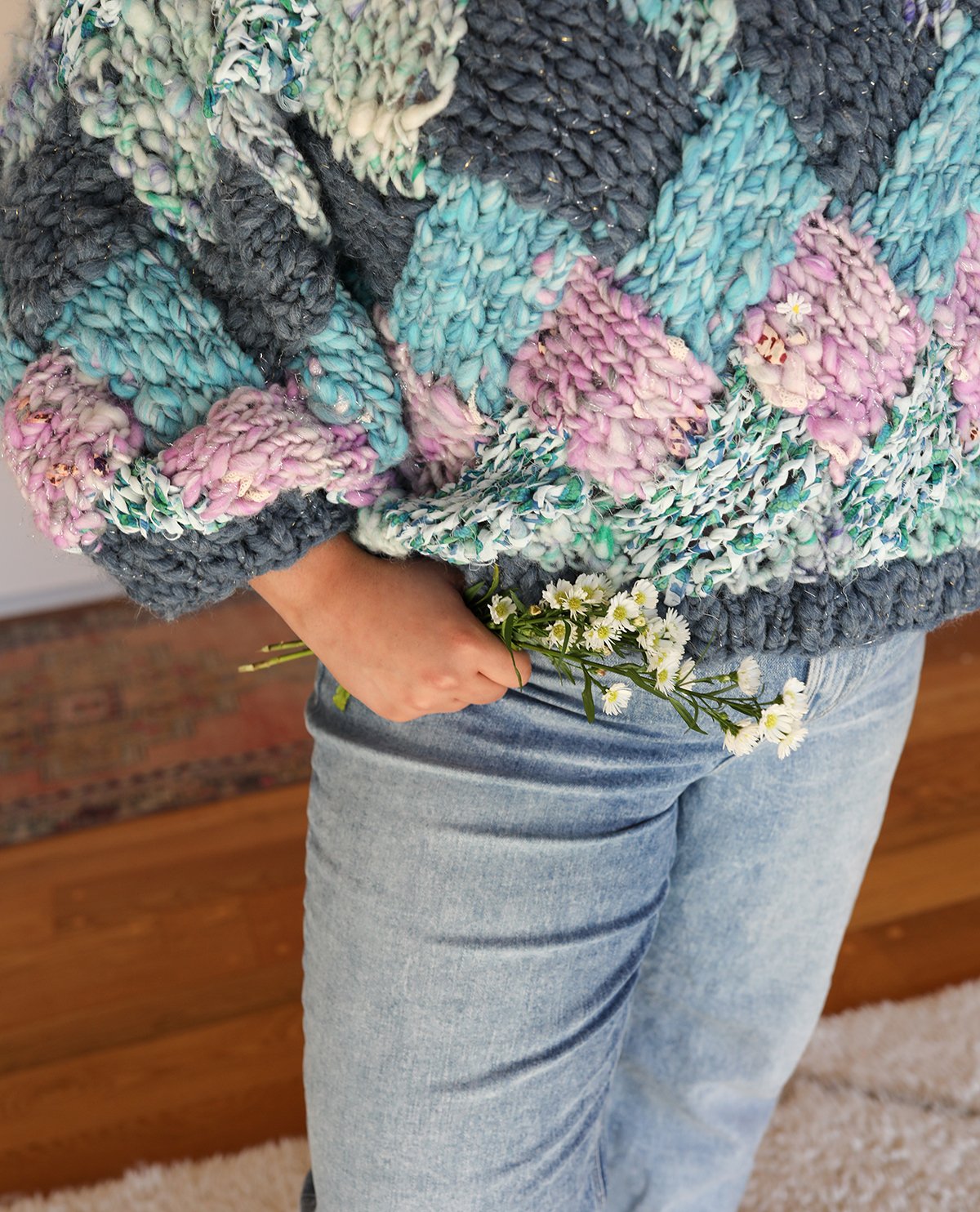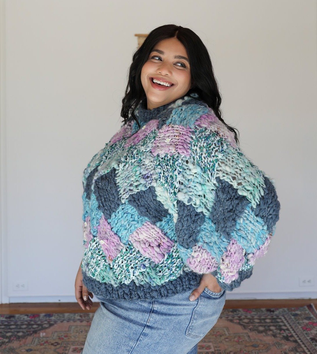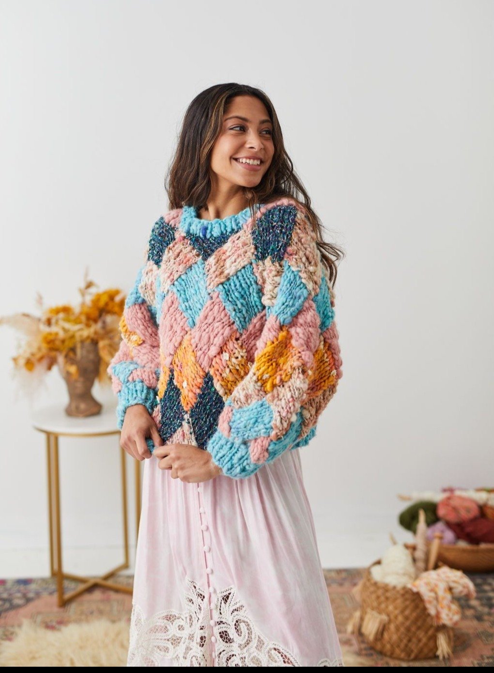 Meet the Harley Sweater Kit and greet winter's chill in style! The Harley Sweater is an entrelac sweater knit with FIVE of our unique, handspun yarns. It is worked bottom up, both in the round and flat. Have no fear, the entrelac stitch looks trickier than it actually is! We're so excited to introduce this stunning technique to you in this enjoyable and adventurous sweater.
