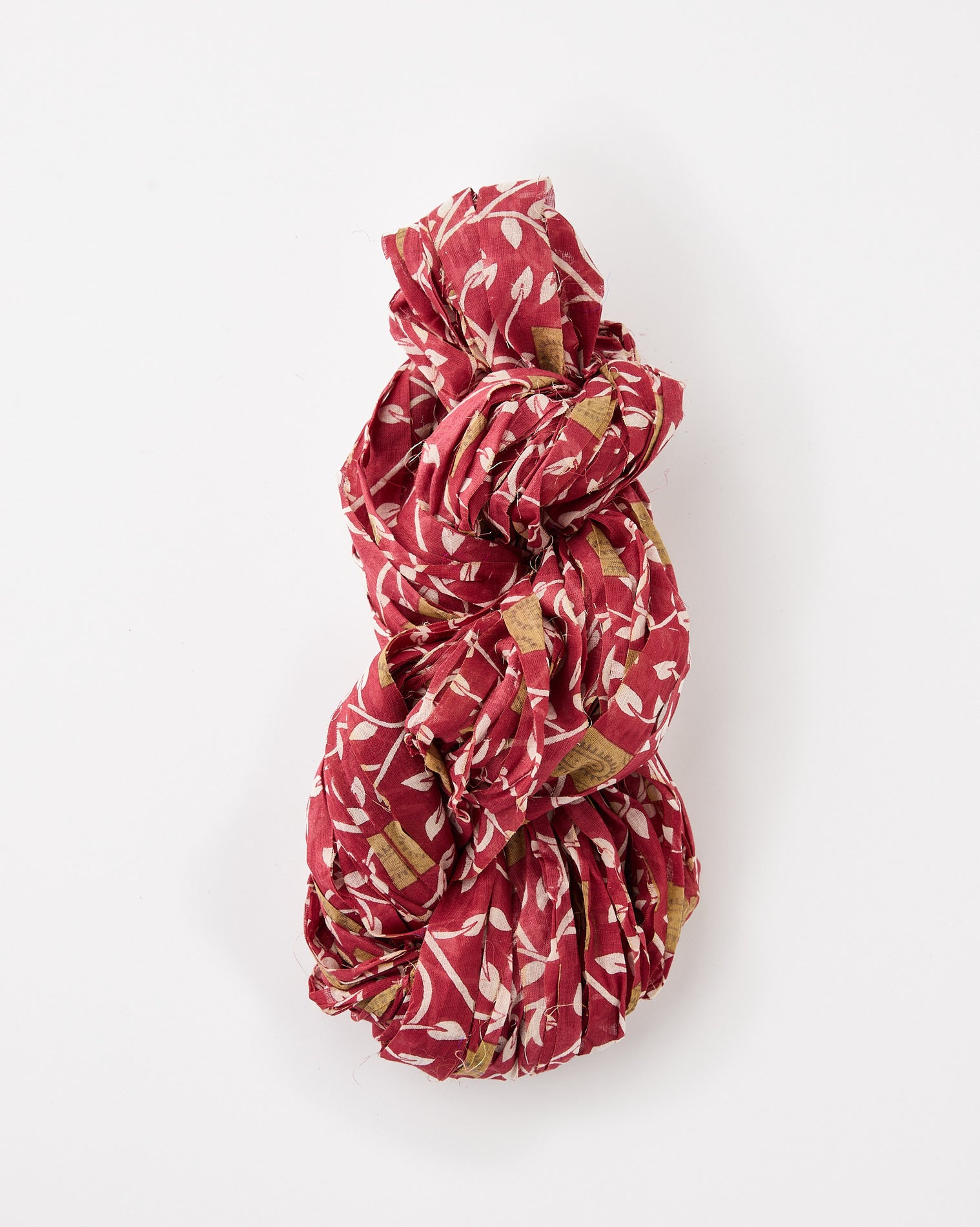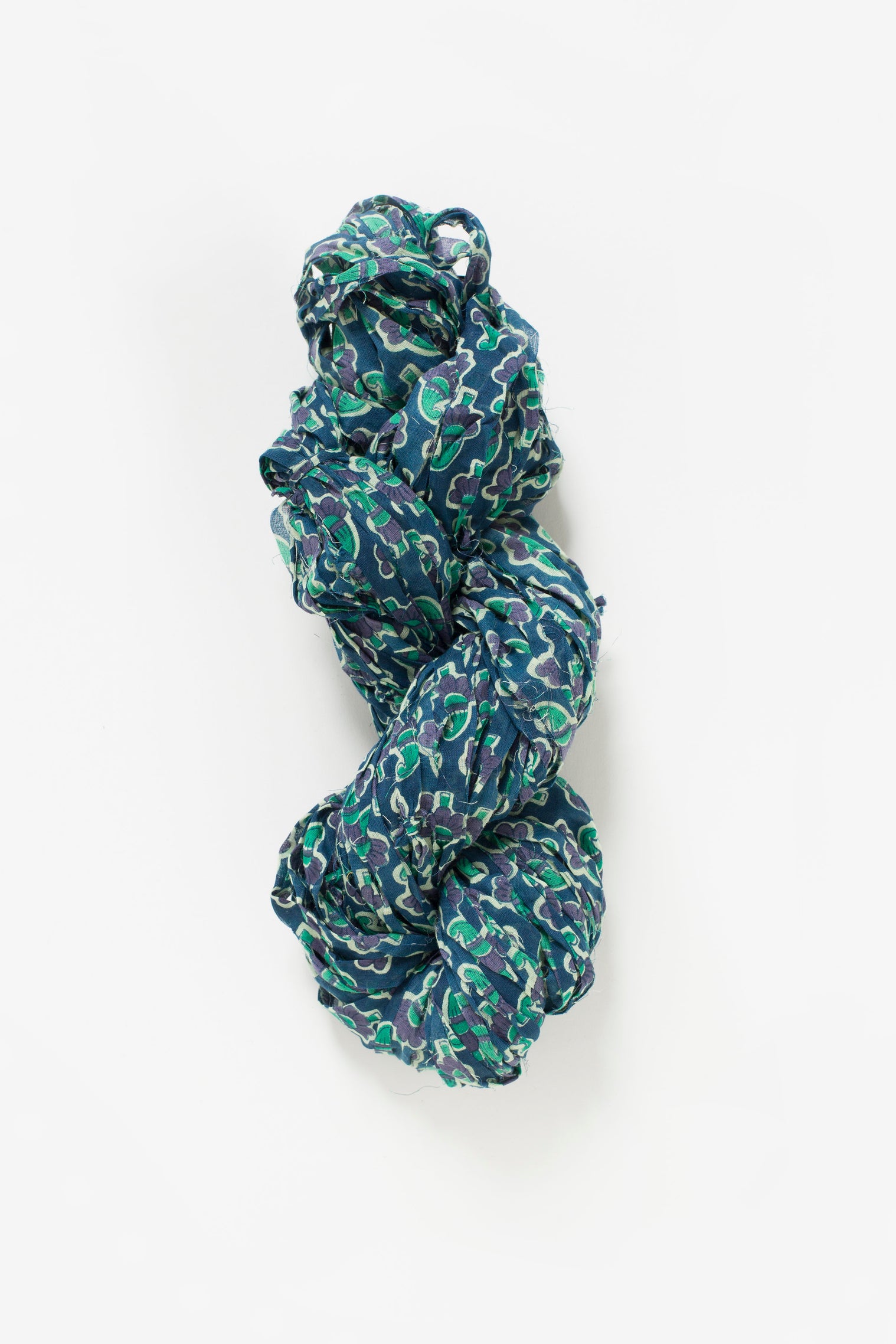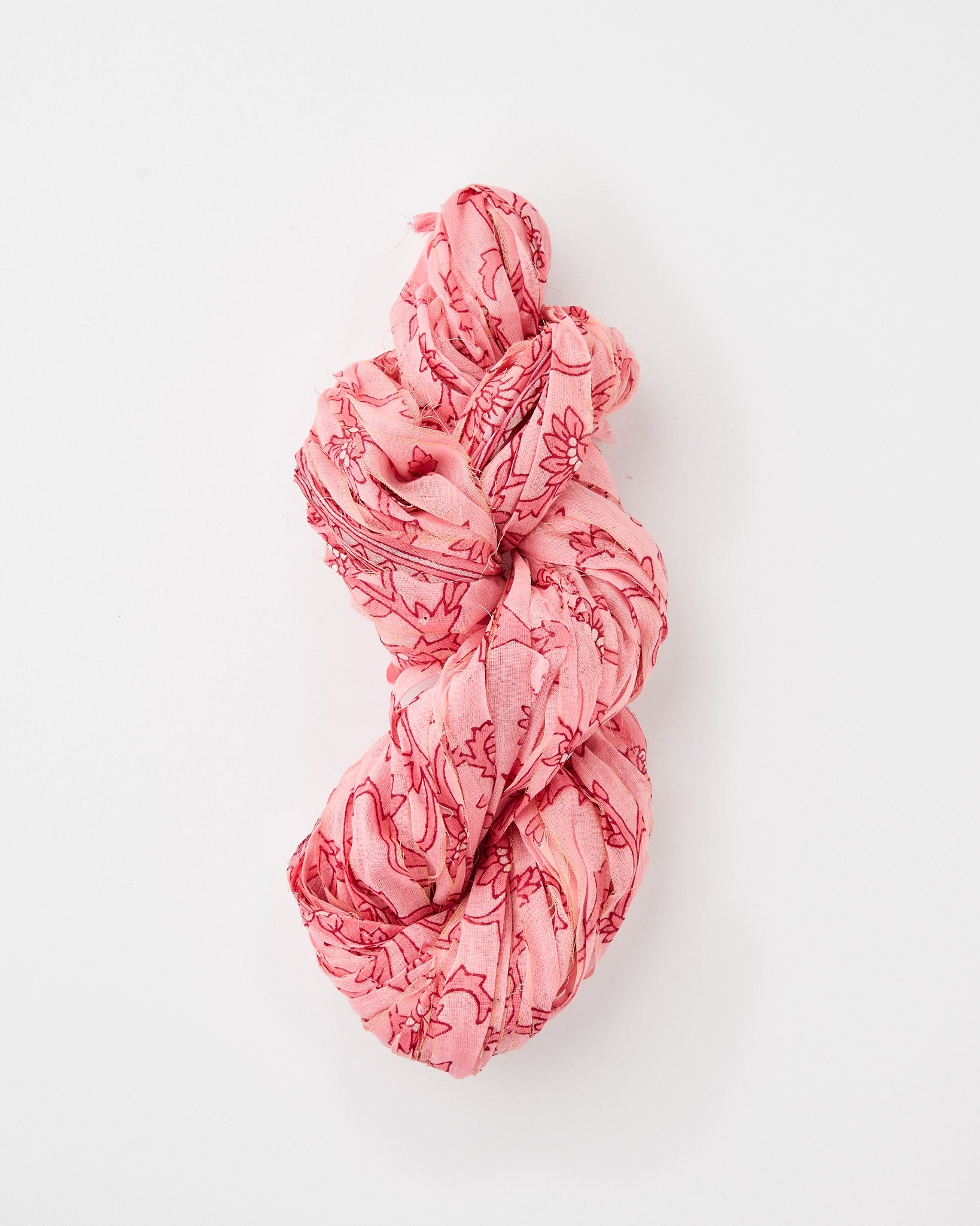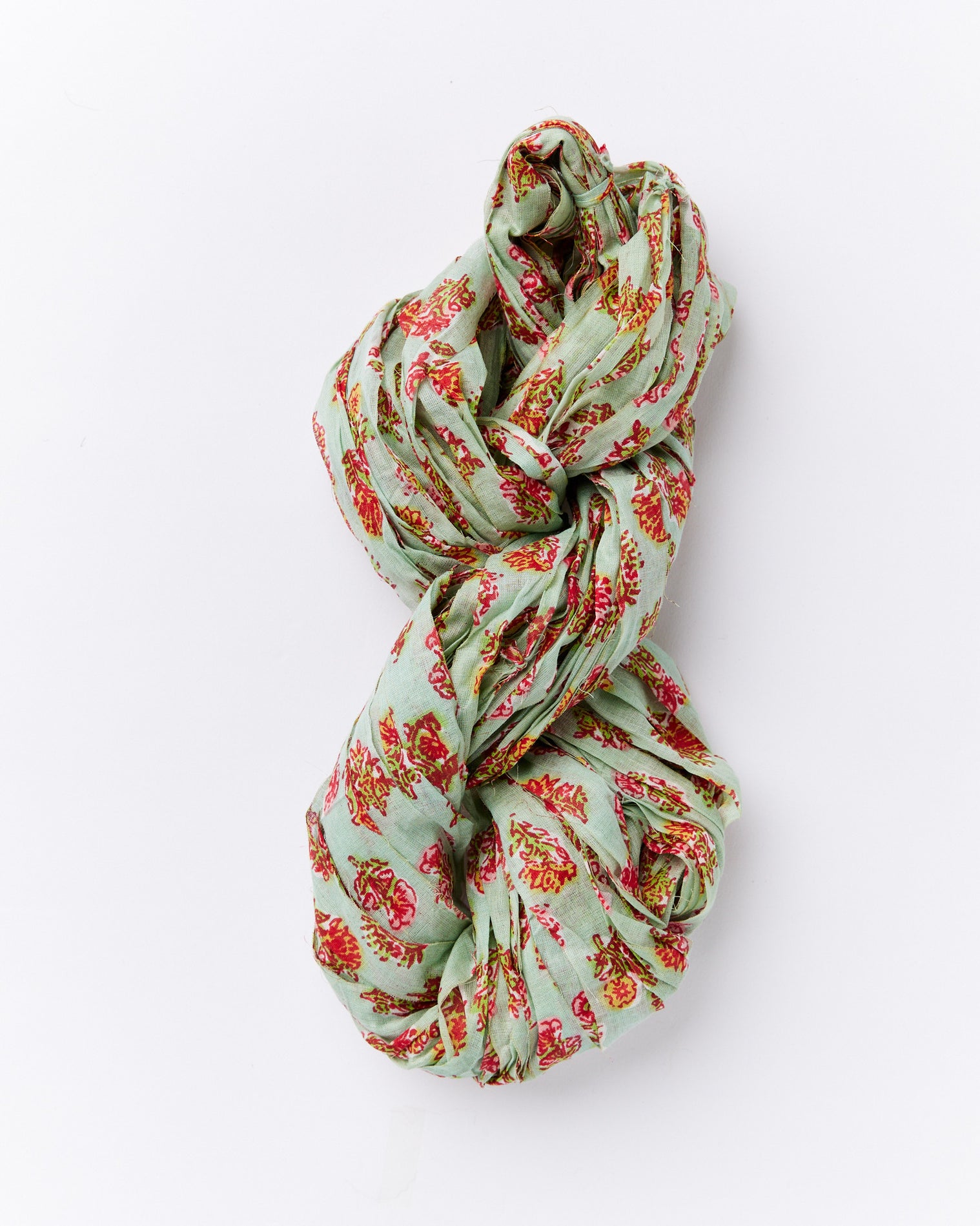 Wildflower is from cotton voile fabric that is screen printed by hand in Jaipur, India. The prints are inspired by vintage treasures both from India and the states! After the fabric is printed, it’s sent up to our team of spinners who then laser cut it into long strips. The strips are knotted together to make yarn and viola you’ve got Wildflower. Within some of the prints you’ll notice different colors and a mix of patterns - this is all part of what makes this yarn so special.