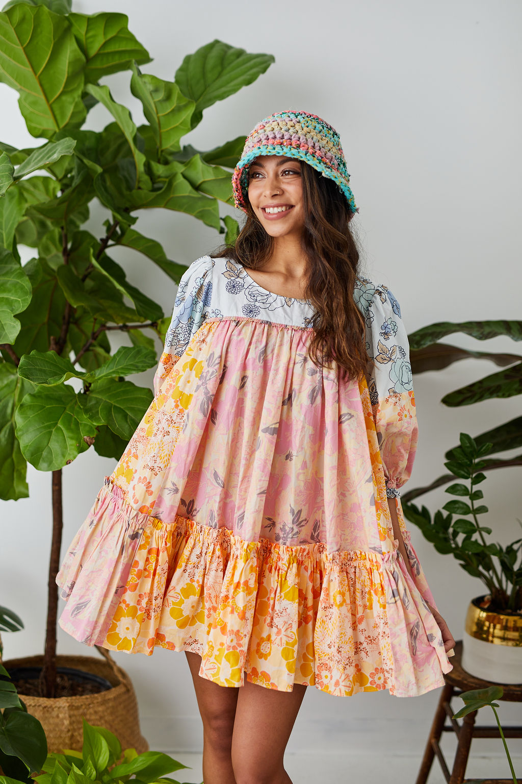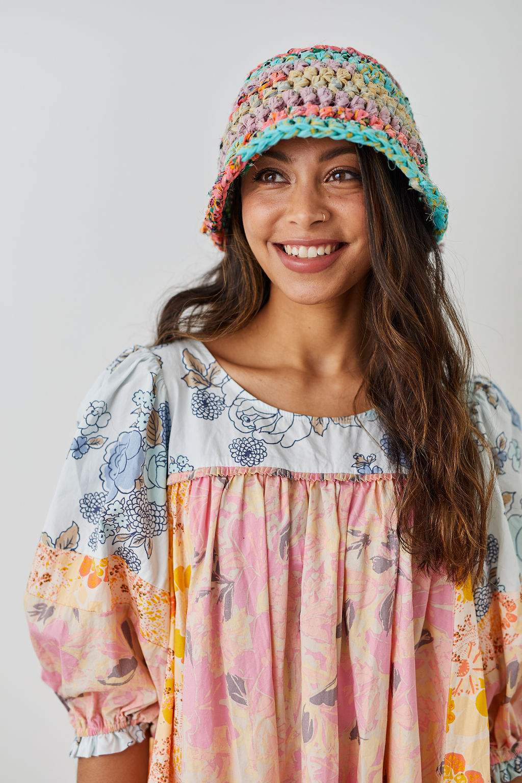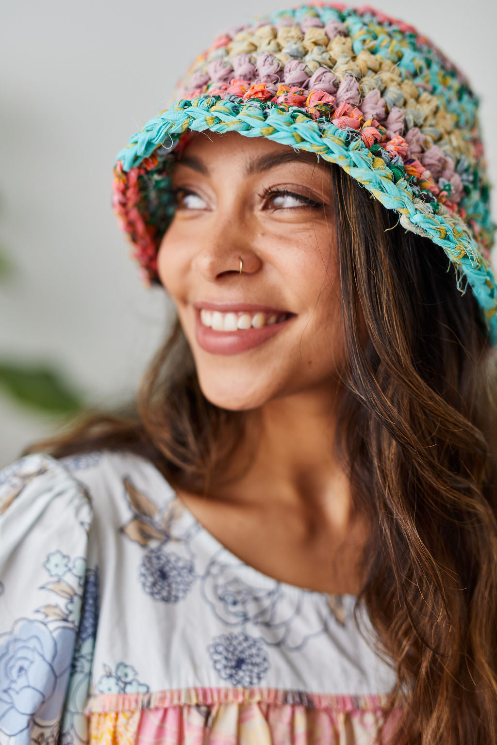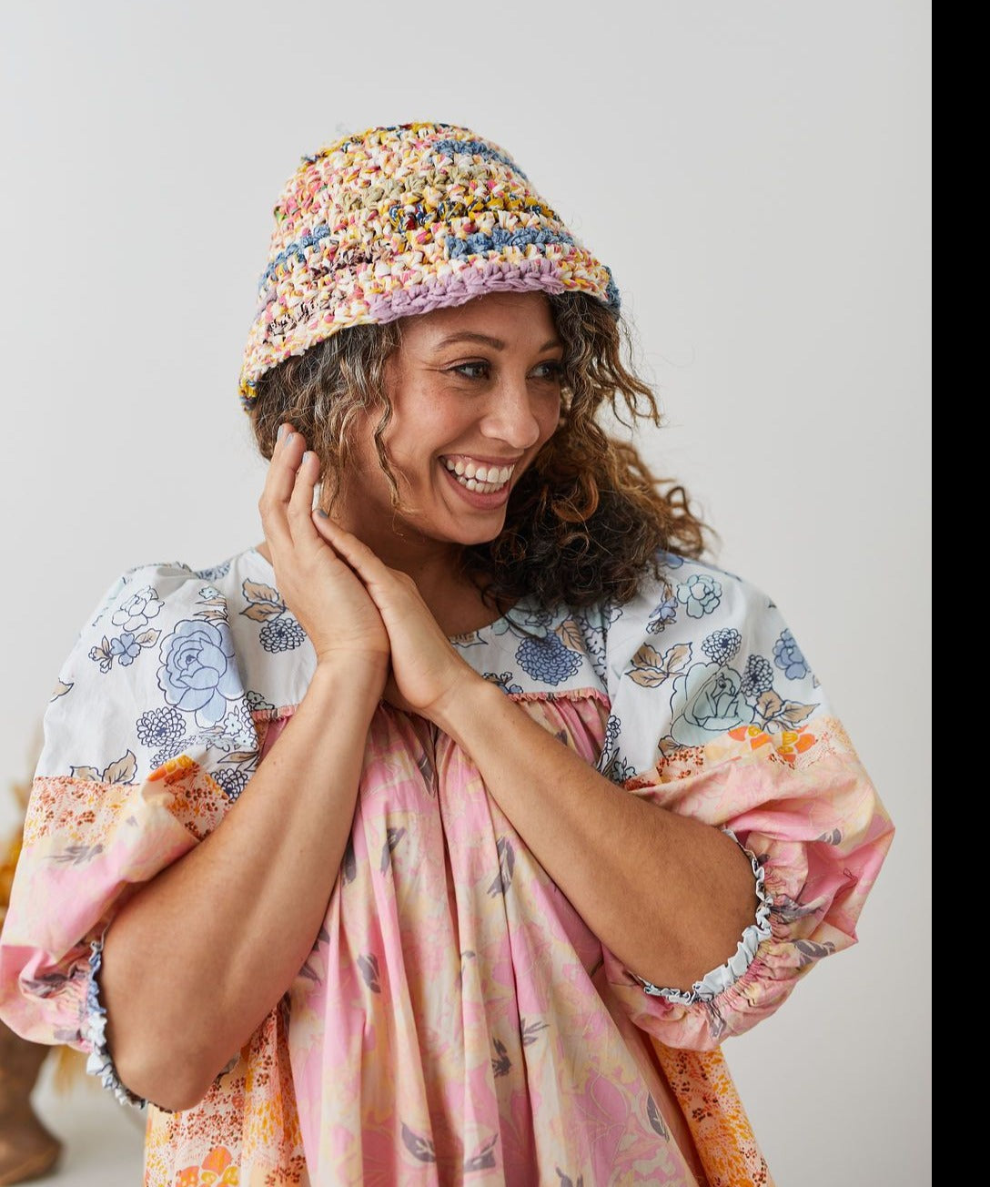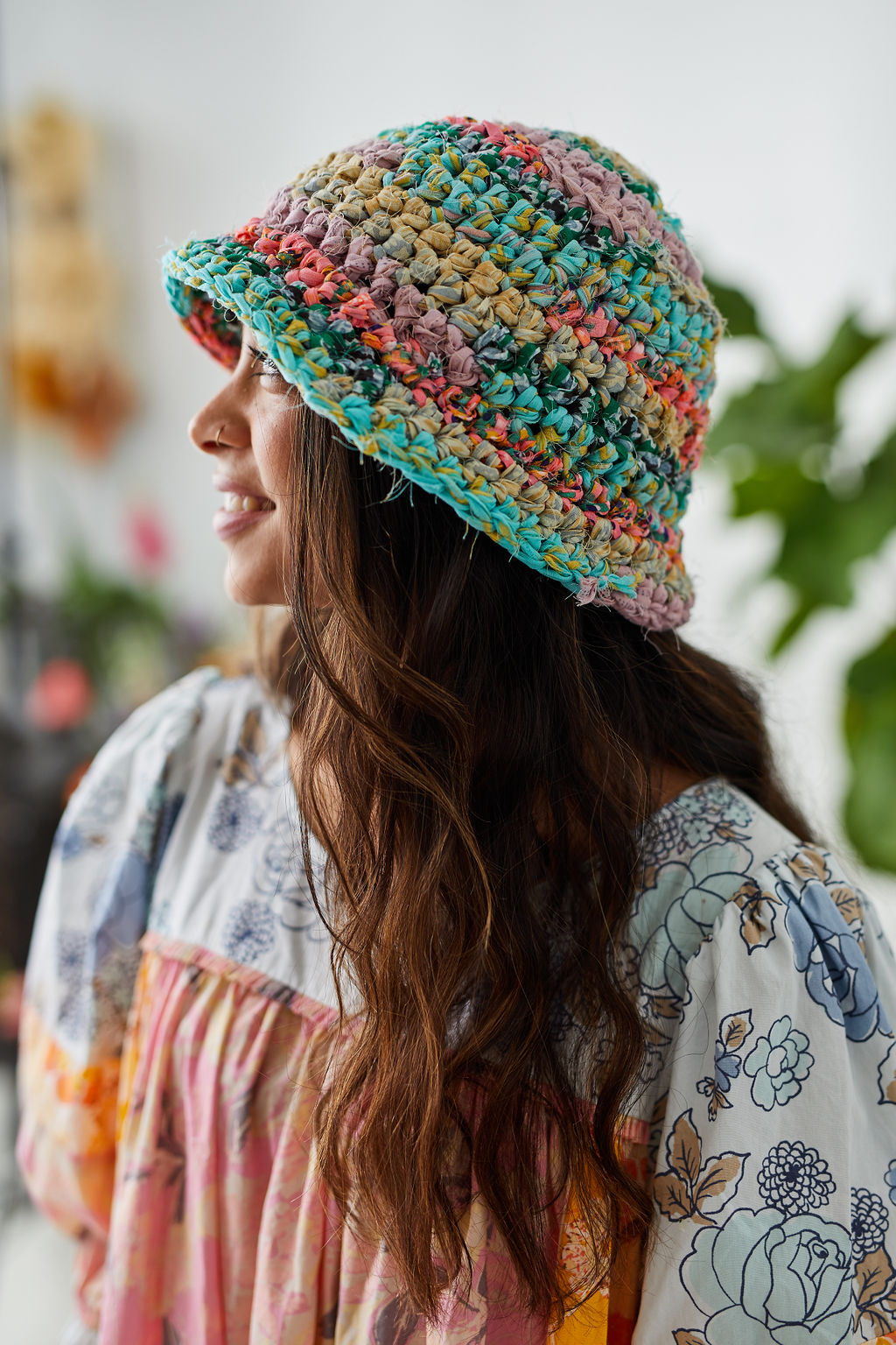 Meet the Wildflower Bouquet Bucket Hat Pattern! A modern spin on the classic bucket hat that can be worn with the brim down or flipped up. Inspired by the 80’s and 90’s (think Blossom!), the Wildflower Bouquet Bucket Hat is ideal for ambitious beginners and experienced crocheters alike. It works perfectly with our Wildflower yarn. Size 1 offers a classic bucket hat look with a narrow brim, while size 2 makes a bold statement with a wider brim.