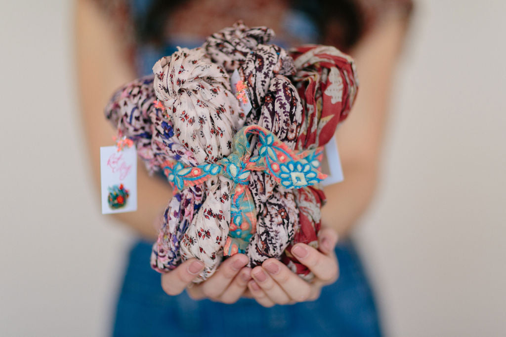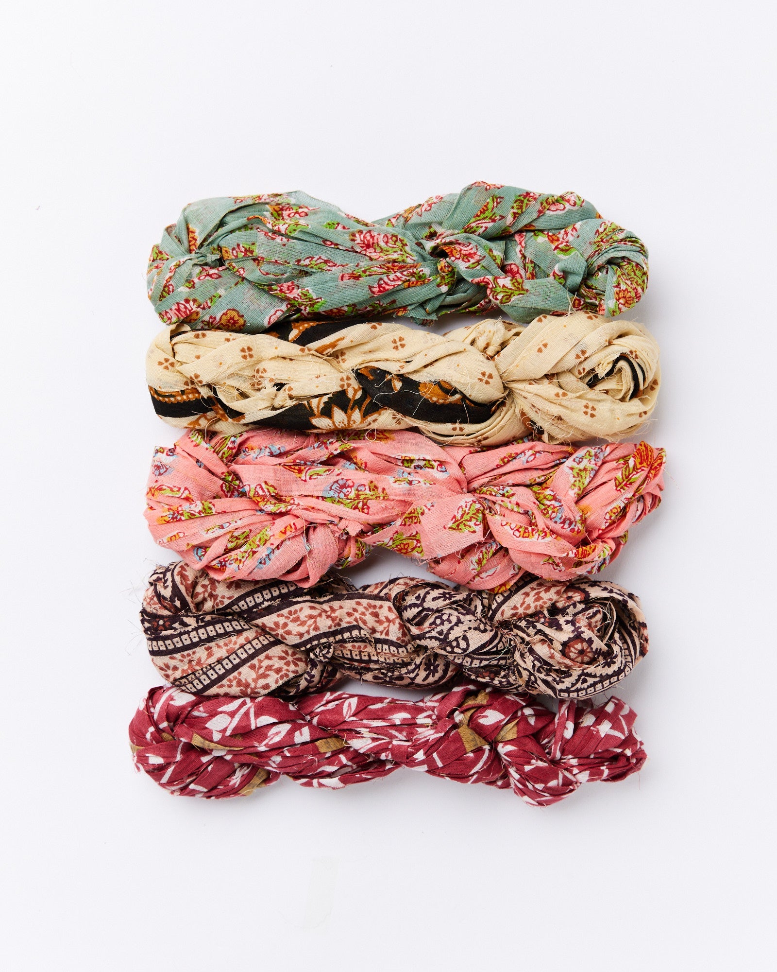 These kits are ideal for weavers who might prefer a bundle of yarns in smaller yardages where the colors all work well together. The kits come in 9 color options: Bon Vivant, Dawn Sky, Forest Bathing, Blush Happy, Midnight Rider, Mellow Mood, Blooming Jasmine, Misty Day, Day Dreaming. They're tied together with pretty, embellished ribbons from my travels to India.